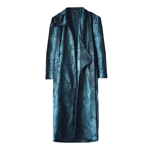 A statement coat crafted in genuine leather, designed through a zero-waste patchwork technique. Each panel is artfully stitched together, featuring delicate blanket-stitch hand embroidery that highlights the individuality of every piece. The asymmetric lapped front and sculpted collar add a modern, architectural edge, while a back vent ensures comfort and effortless movement. Bold, responsible, and meticulously detailed - this coat is a refined fusion of craftsmanship and sustainability.