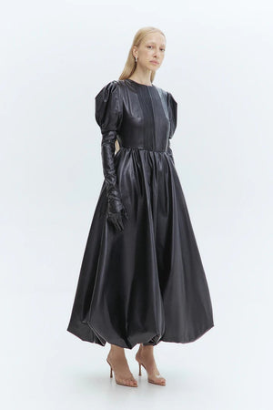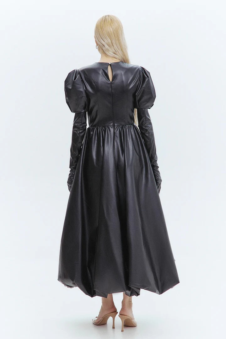 This faux leather maxi dress combines sleek style with comfortable wearability. Its flowing silhouette offers an elegant look, while the leather-like material adds a modern edge. Perfect for both casual outings and special occasions, it ensures you feel confident and effortlessly chic wherever you go.