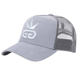 Understated and elevated, this 100% grey suede mesh snapback delivers clean lines and premium texture. Designed with breathable polyester side and rear panels, it’s accented by a striking sky blue God Given Talent logo for a subtle pop of color. Finished with a retro-style adjustable snapback for a personalized, comfortable fit.