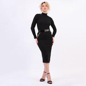 SELL WITH USDesigned in a medium width of 1.6", this leather belt flatters all shapes. Double side chains add a bold, edgy vibe to any casual or dressy look.