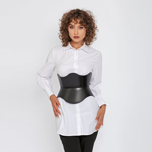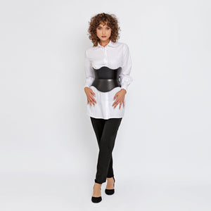 SELL WITH USThe Athena Leather Corset Belt features a bold, high-coverage design and sculpted silhouette that contours the waist for an elegant, edgy look.