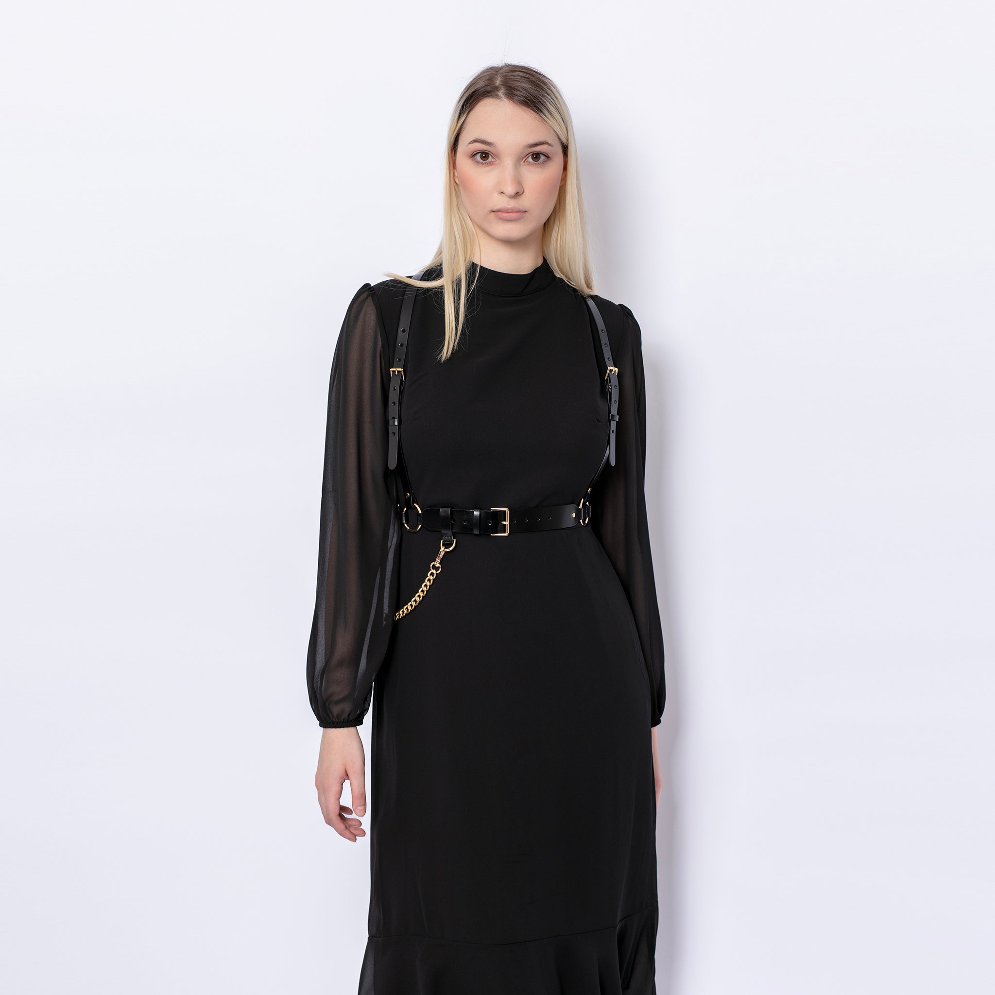 SELL WITH USHandcrafted from Italian leather, the Chained Harness features waist and shoulder adjustments, a detachable chain, adding an empowering look to any outfit.