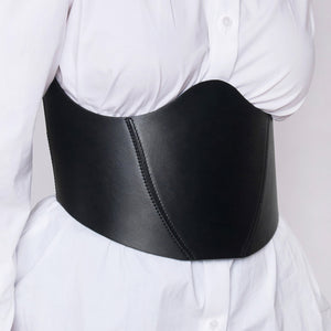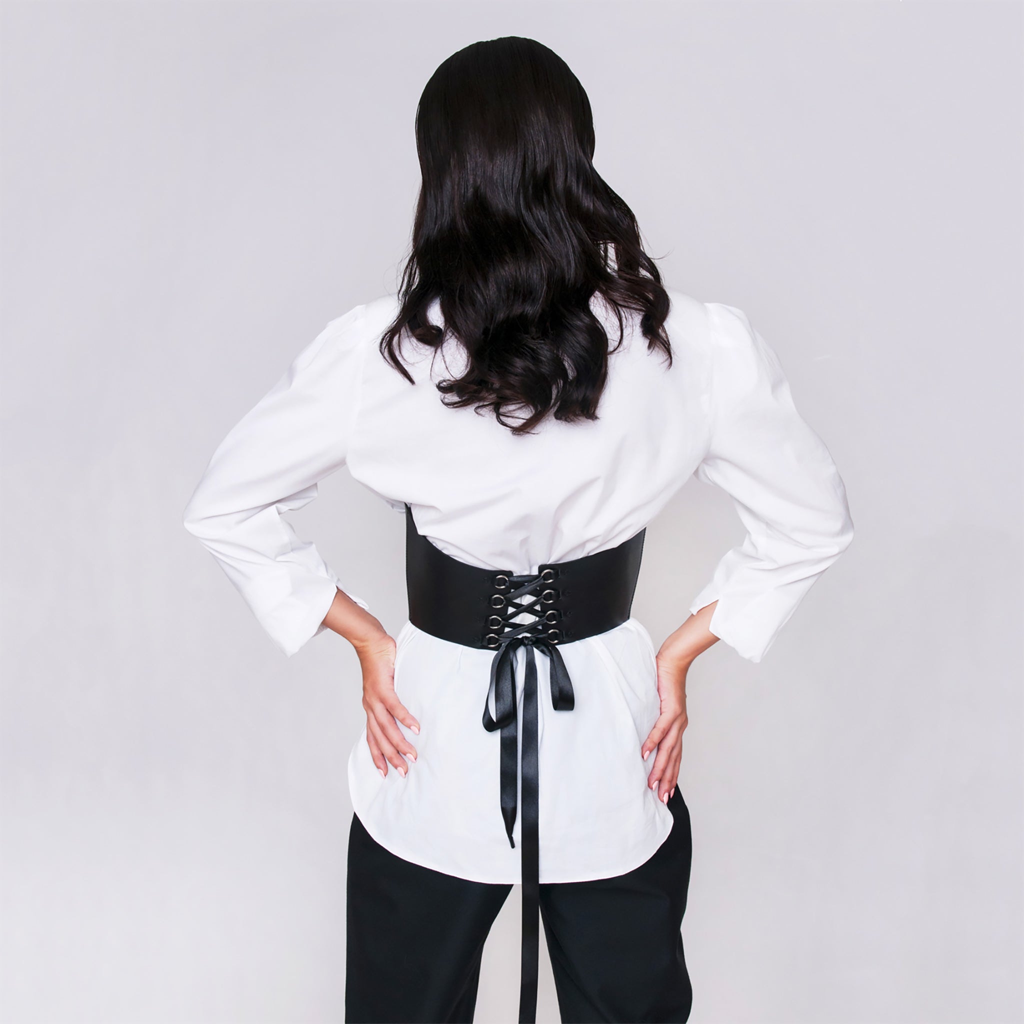 Handcrafted from Italian leather, this elegant underbust corset shapes the waist and defines the figure with its adjustable back lacing.