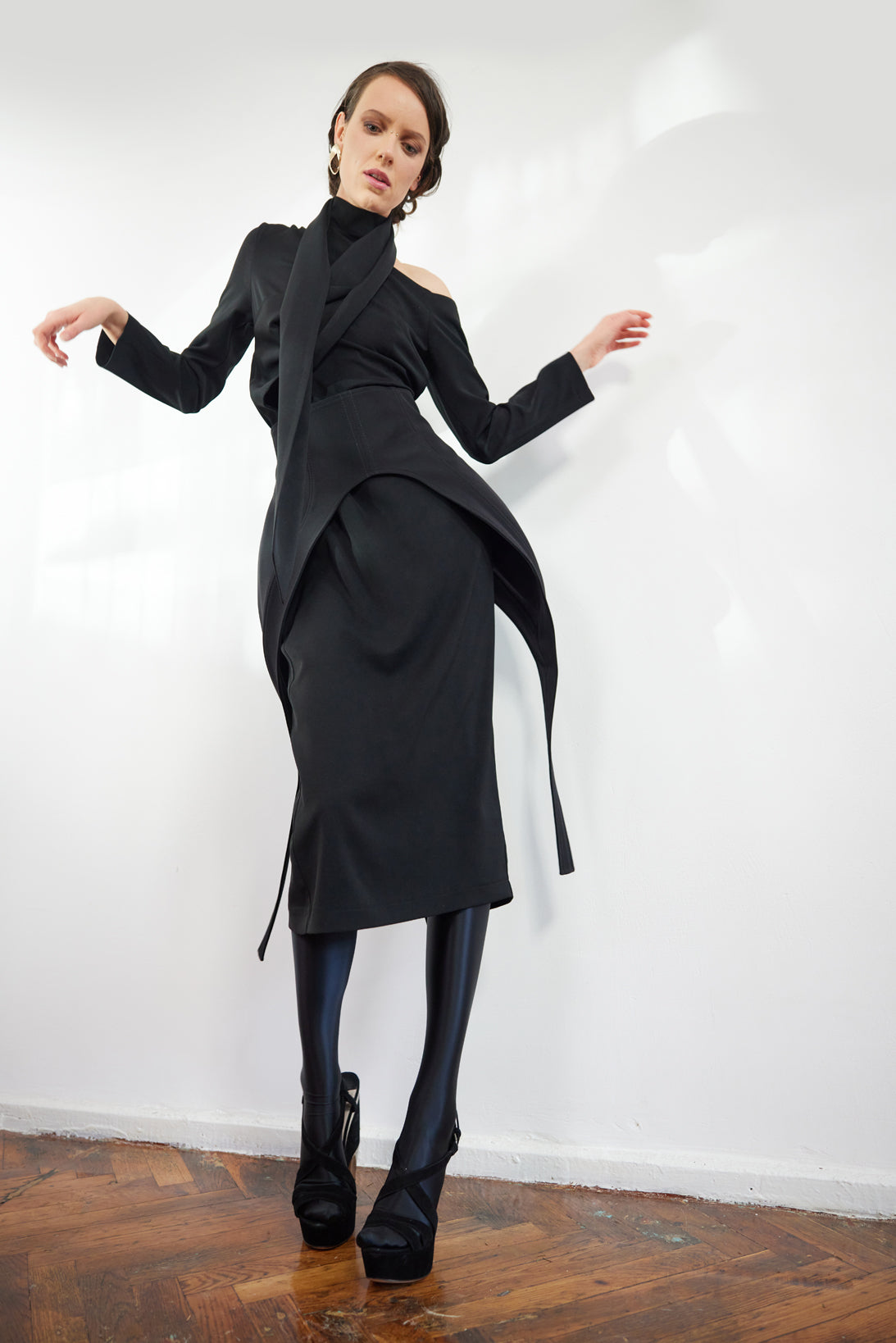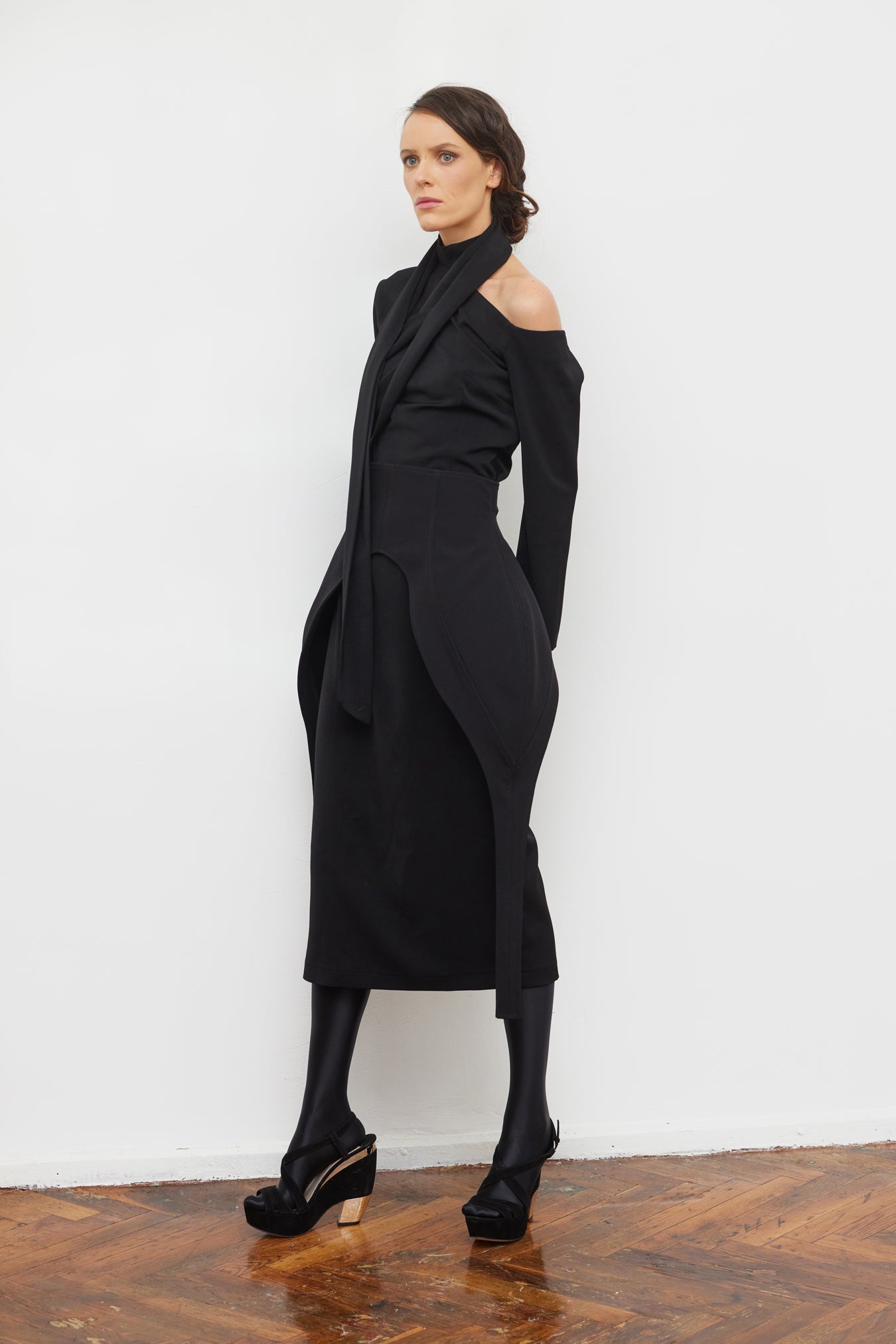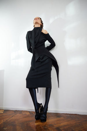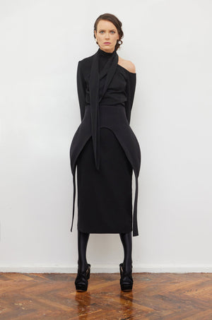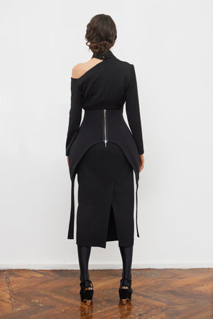 The asymmetric design and subtle piping detail provide a contemporary edge, making it a standout piece for fashion-forward styling. Perfect for pairing with dresses, skirts, or trousers, this versatile corset enhances your look with a bold yet refined statement. A must-have accessory for those who embrace unique and dynamic silhouettes, this corset effortlessly blends minimalism with high-fashion appeal.