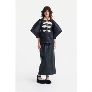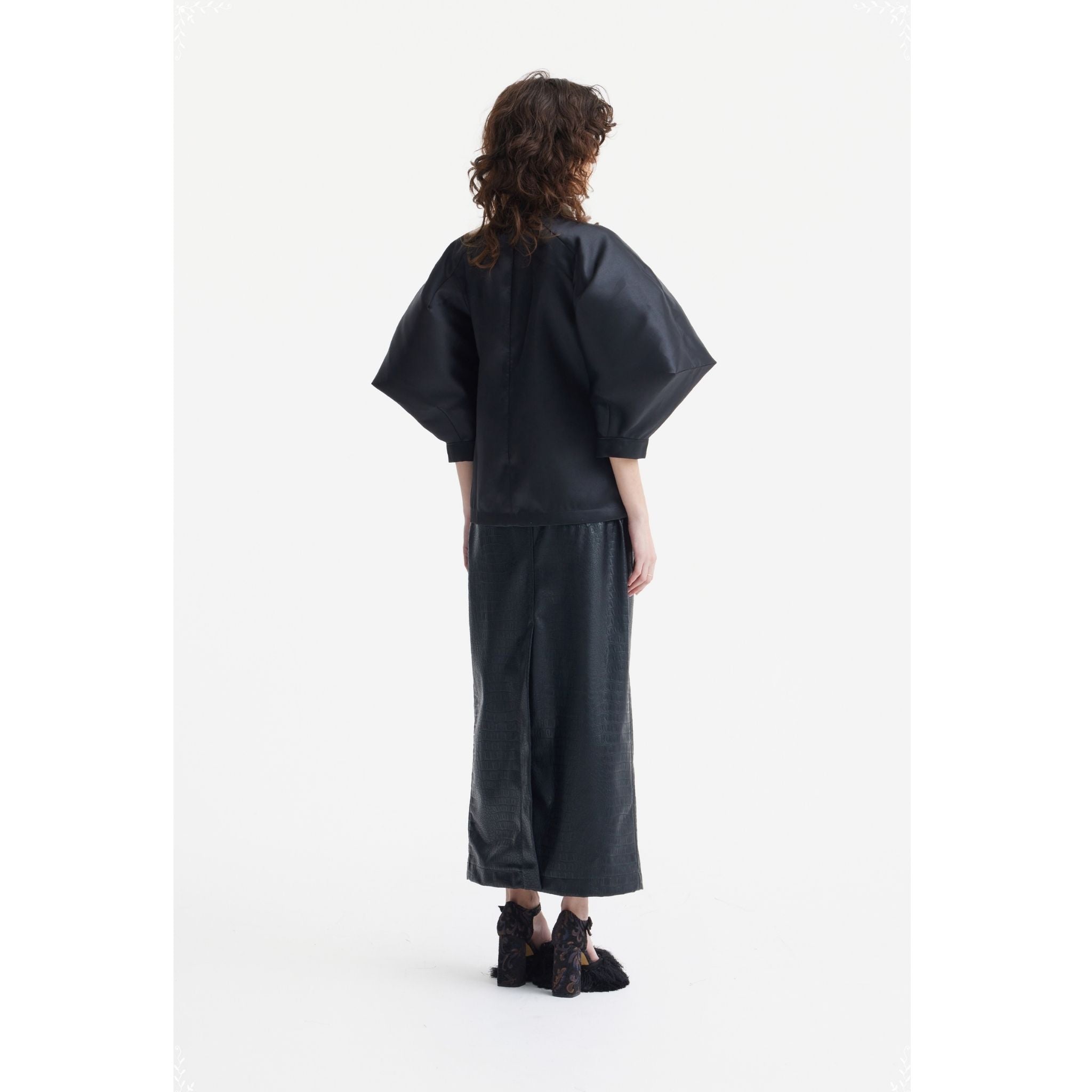 The Black Croc-Embossed Faux Leather Midi Skirt by Julia Allert blends bold texture with everyday comfort. Crafted from soft faux leather, the Black Croc-Embossed Faux Leather Midi Skirt features a straight cut, high waist, and a matching belt that defines the silhouette. The medium-weight fabric provides slight stretch, while full lining ensures smooth movement. Finished with functional side pockets, this Julia Allert design transitions effortlessly from day to evening.