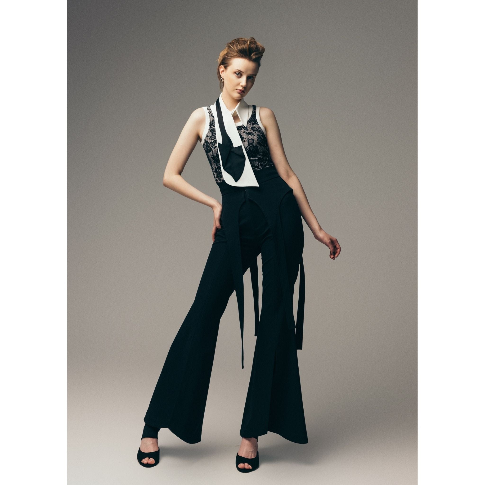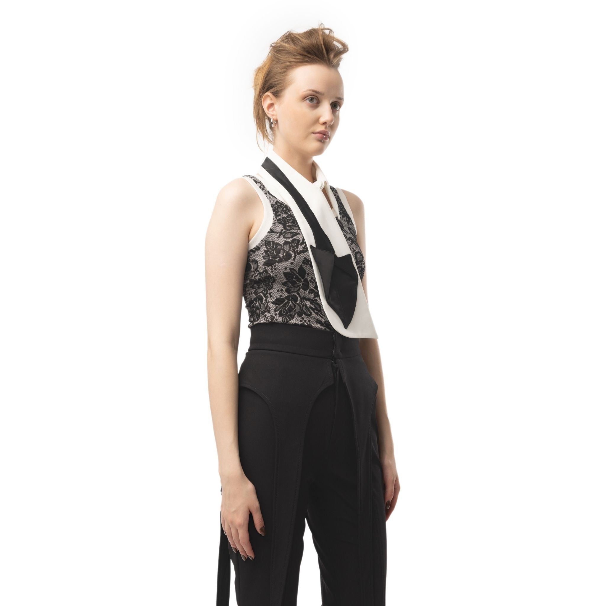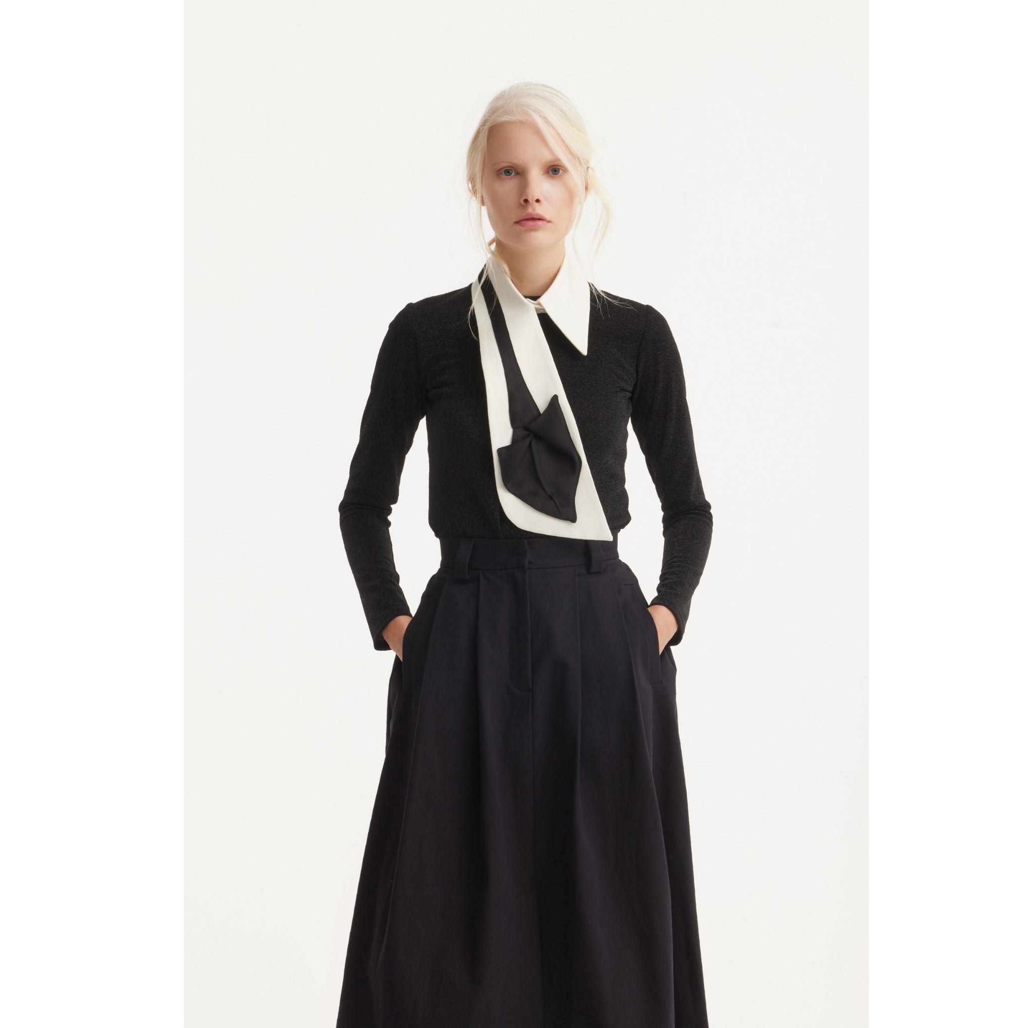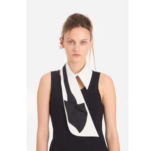 The Julia Allert Detachable Shirt Collar With Sculptural Tie White fuses menswear inspiration with feminine architecture. Made from crisp cotton-blend poplin with a black satin sculptural tie, the Detachable Shirt Collar With Sculptural Tie White creates a bold trompe-l’œil effect. A sleek layering piece worn over shirts, sweaters or dresses for modern contrast.