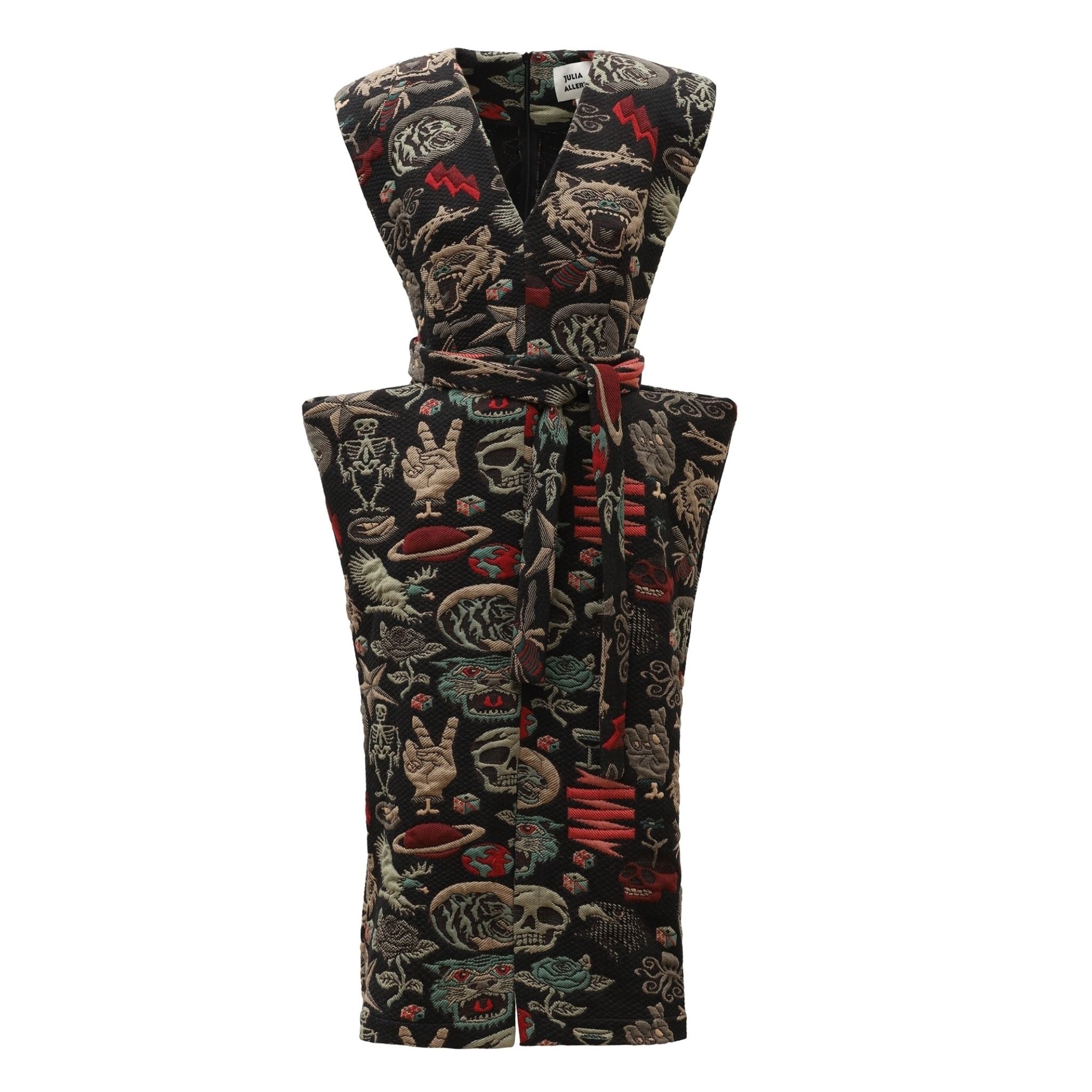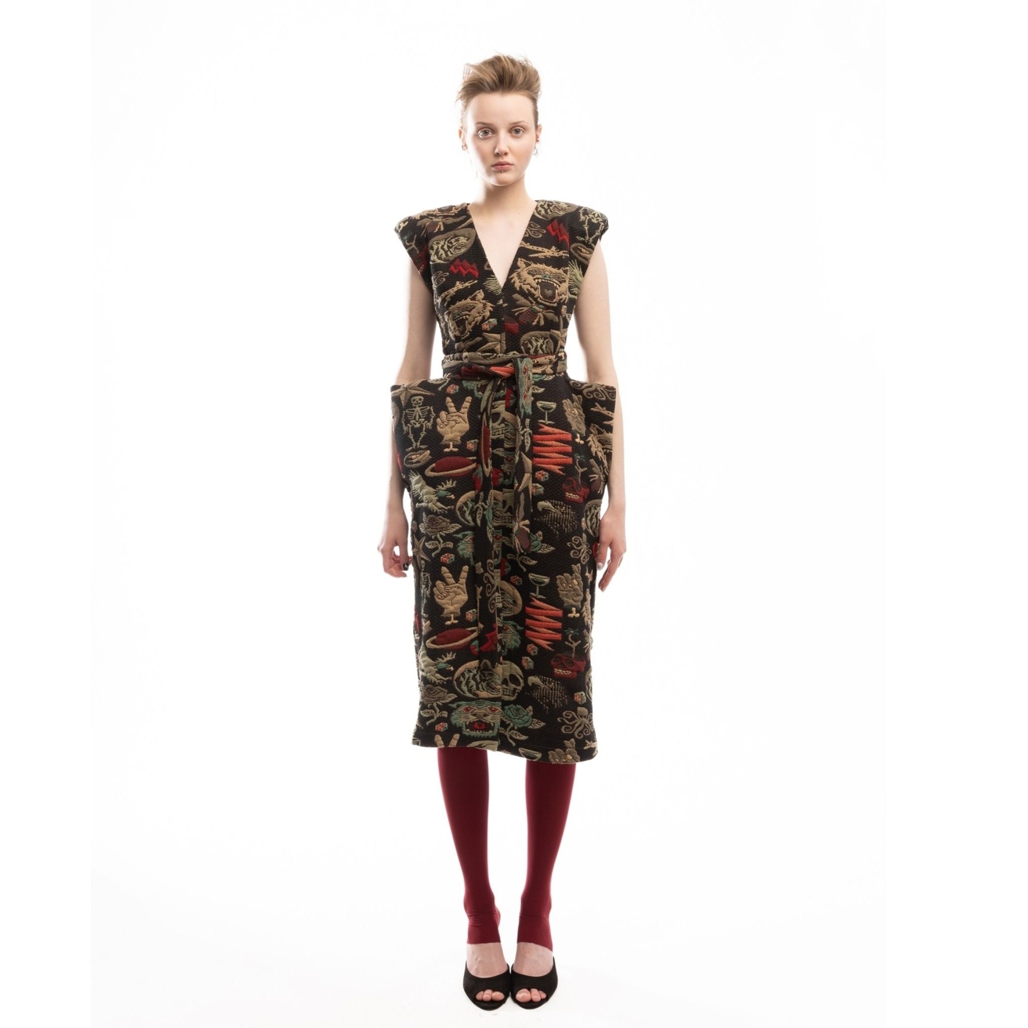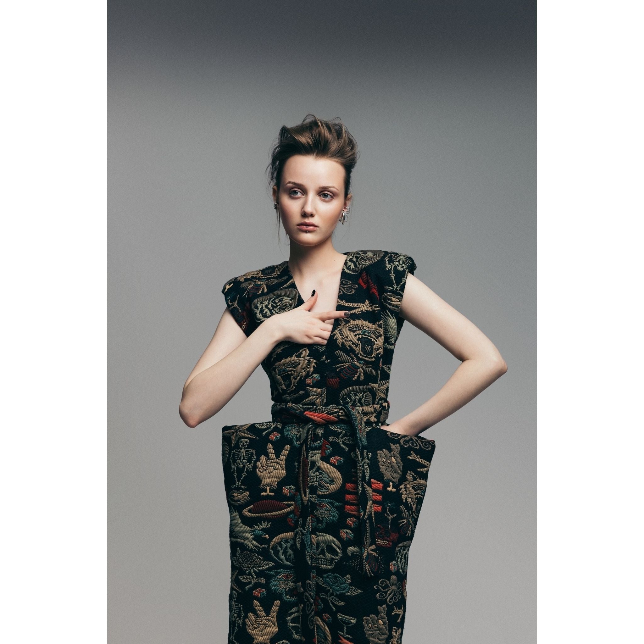 Model's Measurements: Height 5'8.5", Bust 31.1", Waist 25.6", Hips 37". The model wears size XS.