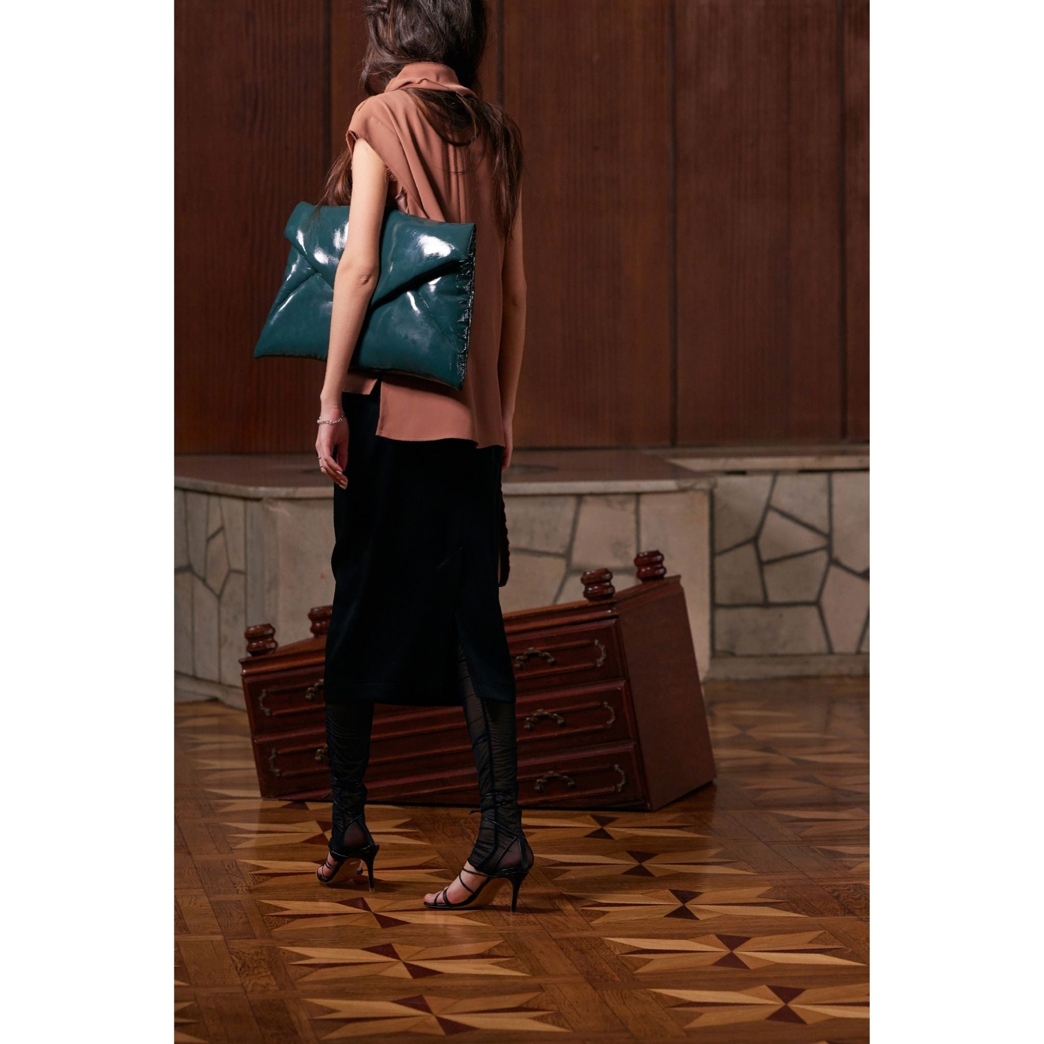 The Julia Allert Glossy Patent Envelope Clutch Bag Emerald stands out with its vivid color and sculptural shine. Crafted from glossy patent fabric with quilted padding, the Glossy Patent Envelope Clutch Bag Emerald maintains an elegant silhouette while offering comfort and structure. The premium inner lining and secure snap-button closure make it both practical and luxurious — perfect for events or sophisticated daily wear.