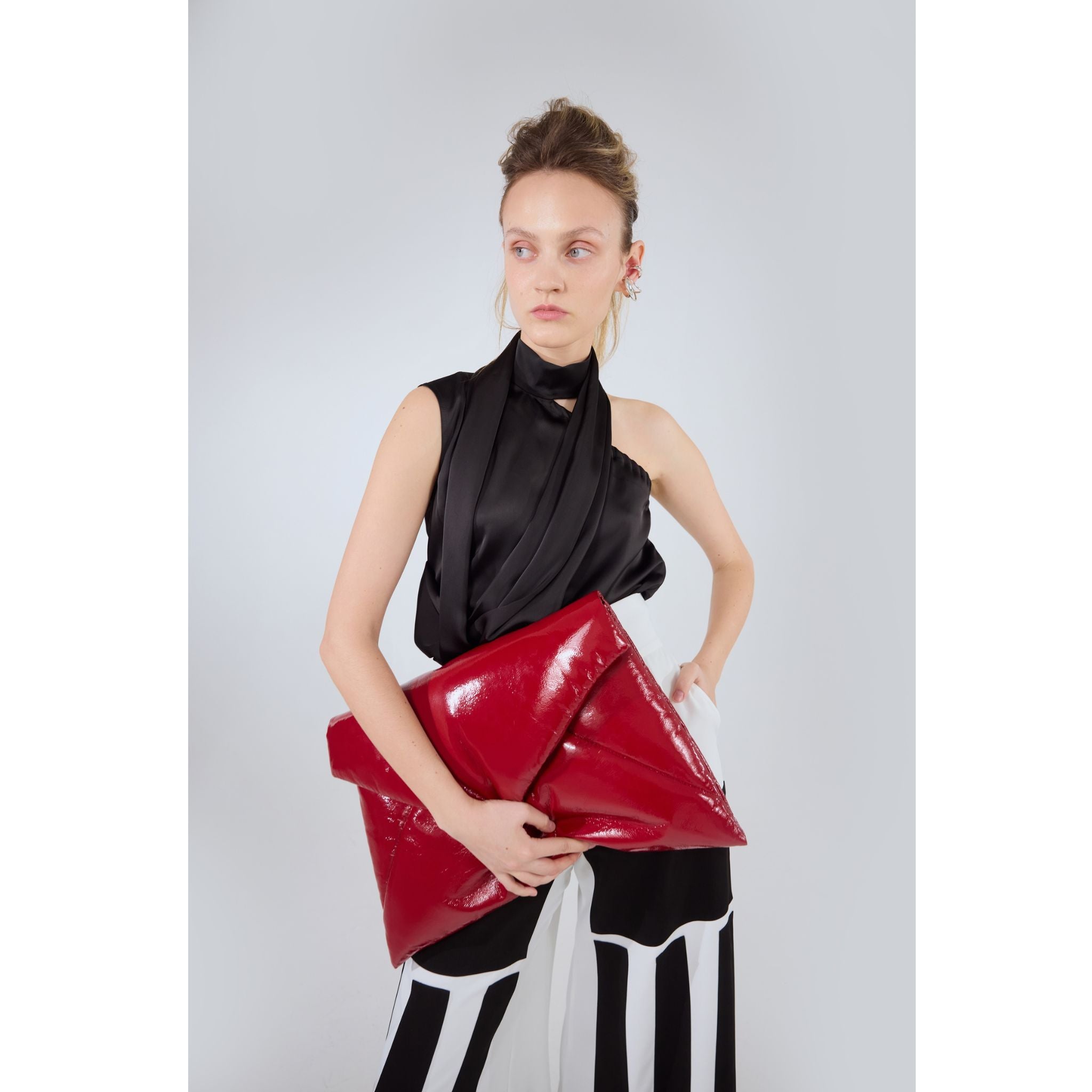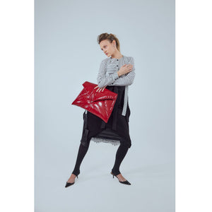 The Julia Allert Glossy Patent Envelope Clutch Bag Red brings bold elegance through its sculptural padded silhouette and high-shine finish. Crafted from glossy patent fabric with quilted detailing, the Glossy Patent Envelope Clutch Bag Red offers a plush, structured feel while staying lightweight. A premium inner lining protects your essentials, while the snap-button closure ensures secure wear. Spacious yet refined, it transitions seamlessly from evening looks to modern daytime styling.