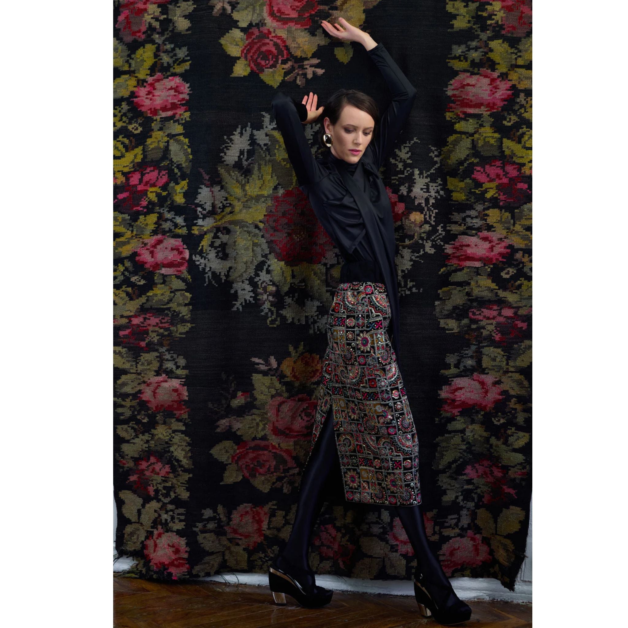 The satin lining and back slit provide ease of movement, while the ankle-length silhouette exudes timeless elegance. Perfect for formal gatherings, festive occasions, or a stylish evening out, this skirt pairs beautifully with solid tops to let the stunning embroidery take center stage.