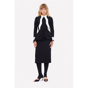 This two-piece set redefines elegance with a sophisticated silhouette and modern details. The midi-length dress is designed with a sculptural peplum that accentuates the waist, offering a striking yet refined look. Long sleeves provide coverage, making it perfect for transitional weather or formal occasions. Crafted from breathable, high-quality fabric, it balances comfort and style effortlessly.