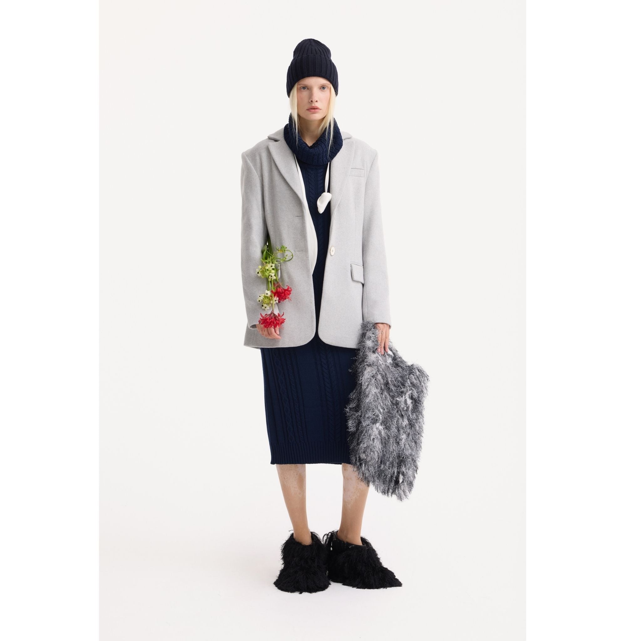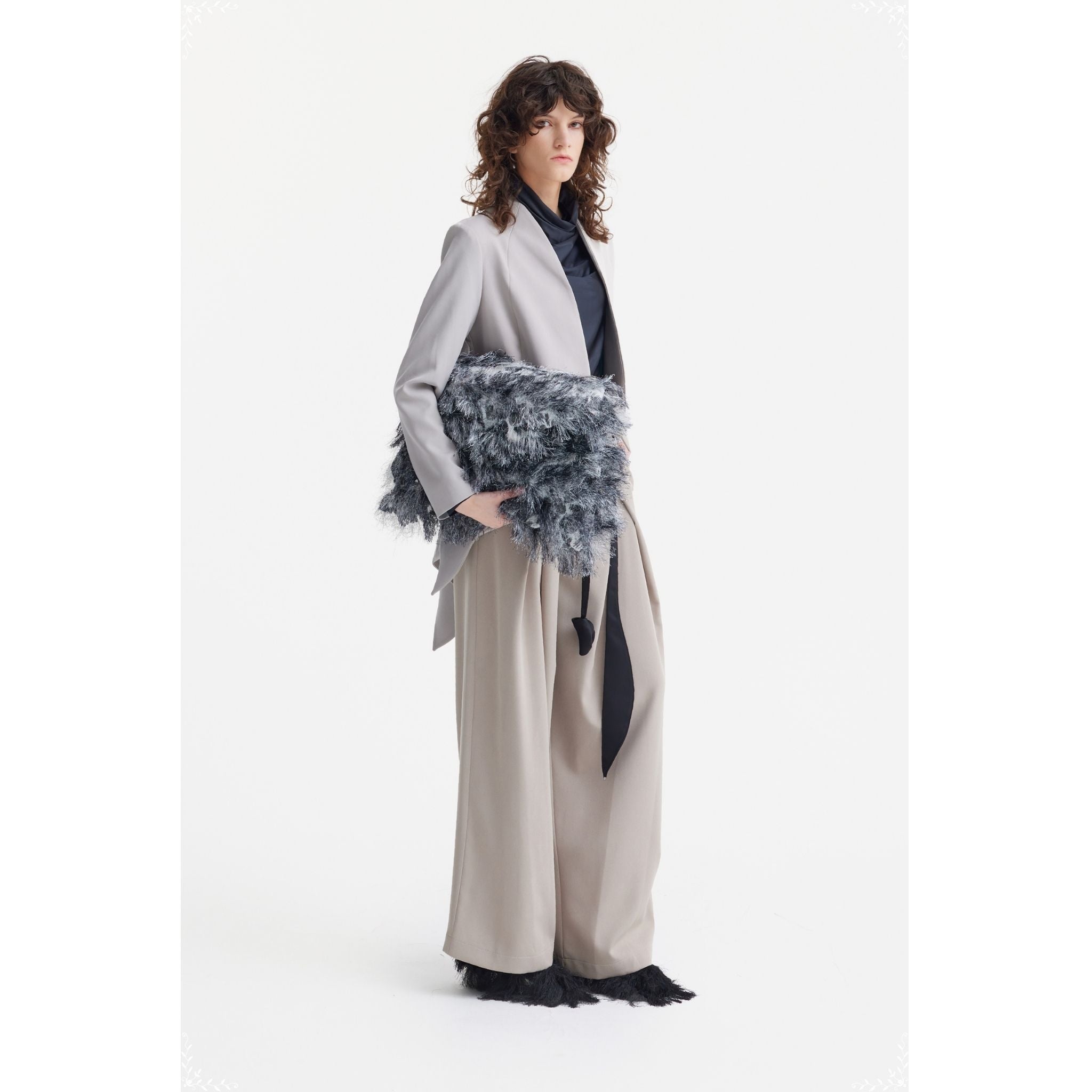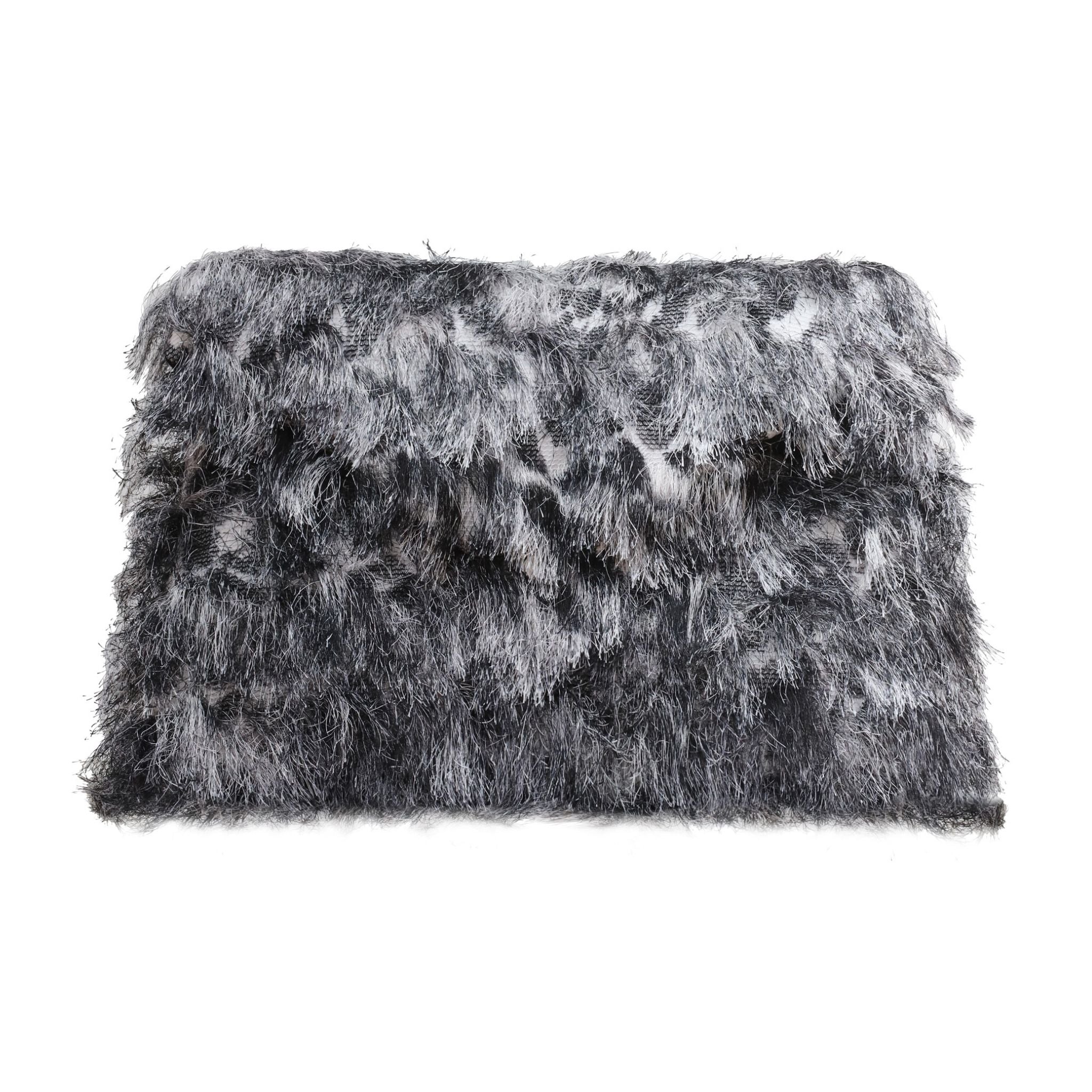 The Julia Allert Textured Fur-Effect Envelope Clutch Bag Black White blends softness and structure in a striking monochrome palette. Crafted with a layered fur-effect surface, the Textured Fur-Effect Envelope Clutch Bag Black White creates dynamic movement and tactile dimension. Its clean envelope silhouette and compact interior keep the design modern while offering space for essentials. A bold accessory that adds artistic contrast to eveningwear or elevated day looks.
