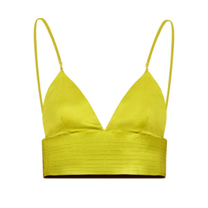 Crafted from pleated silk charmeuse, the Oasis Crop Top offers a luminous drape and flattering fit—perfect for beach brunches, getaways, or sunset dinners.