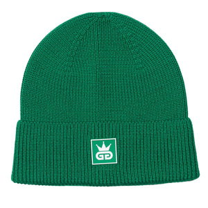 Rich green wool defines this GGT knitted hat, offering a grounded, contemporary alternative to classic neutrals. The ribbed knit provides a secure, comfortable fit, while the tonal white-and-green rubber patch logo adds a subtle yet distinctive finishing touch. Designed for everyday wear, this hat pairs effortlessly with outerwear and streetwear alike, delivering warmth, character, and quiet confidence.