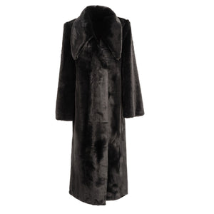 SELL WITH USElevate your outerwear collection with this relaxed-fit maxi faux fur coat in timeless black. Featuring an oversized collar for a dramatic, luxurious silhouette, this coat combines warmth, style, and effortless elegance. Hidden side pockets maintain a sleek line, while the silky viscose-silk lining ensures smooth comfort against the skin. Perfect for making a statement on any occasion, this coat is designed to be a standout piece in your wardrobe.