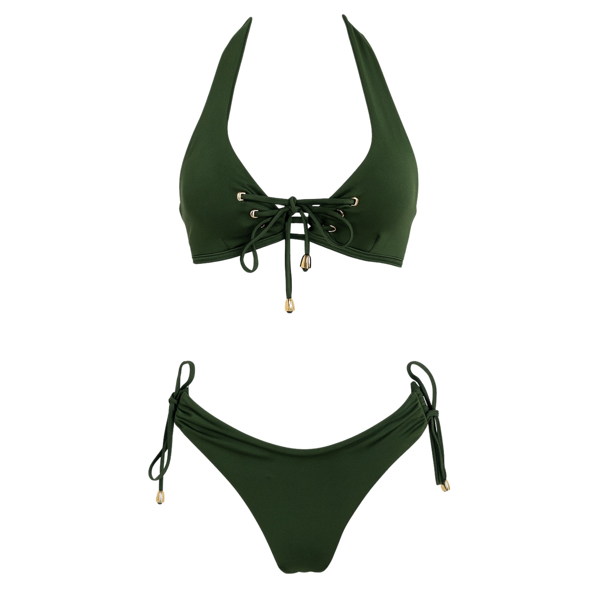 SELL WITH USSculpted to perfection, the Forest Green Lace-Up Bikini Set is your passport to sun-soaked sophistication. Handcrafted in Colombia from soft, sustainable performance fabric, this set merges eco-conscious values with unapologetic allure.