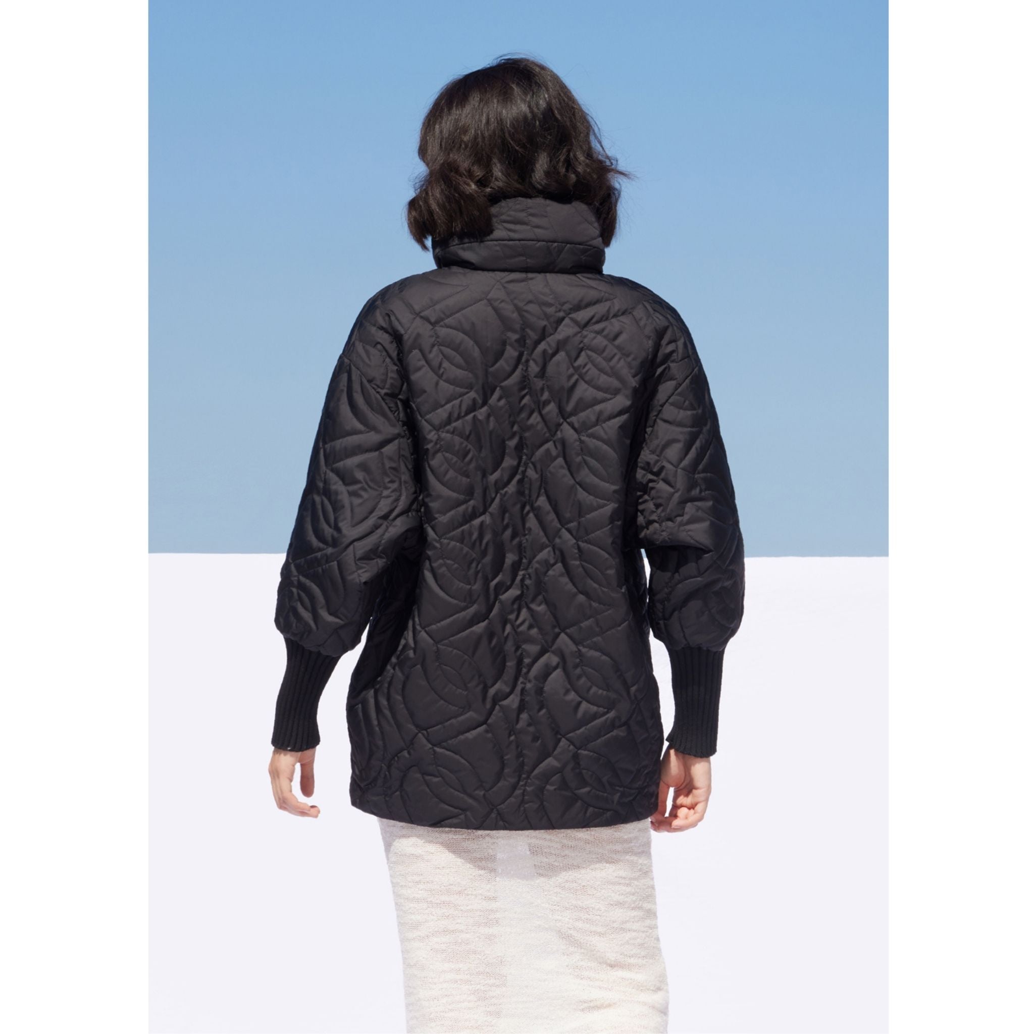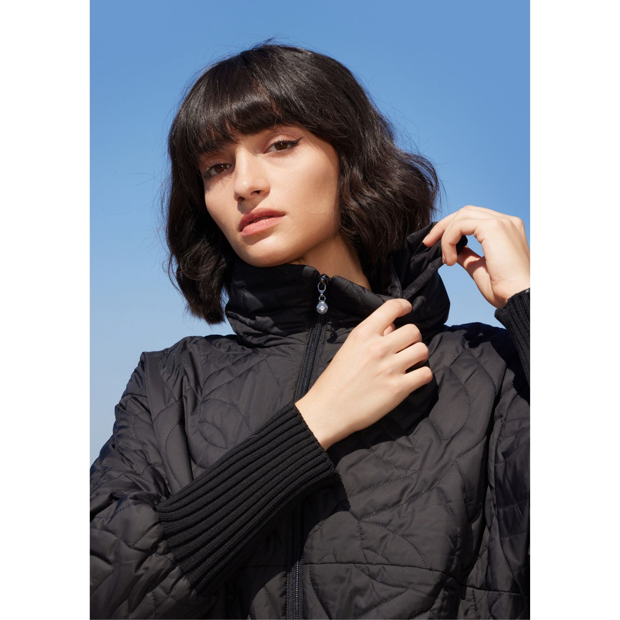 The Kiasa jacket by MADZERINI features a structured silhouette and contemporary aesthetic. Its minimalist black design and lightweight construction create a versatile outerwear piece suitable for everyday city styling.
