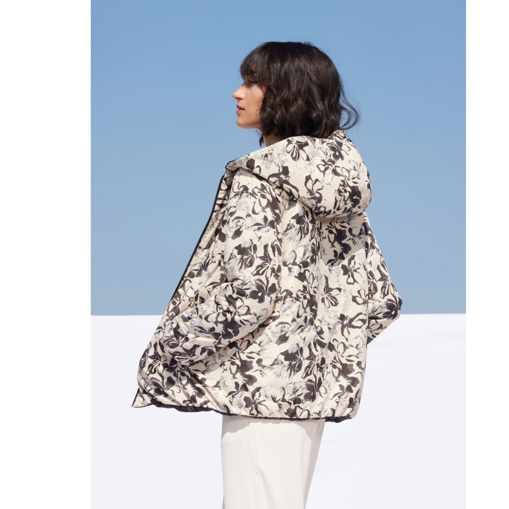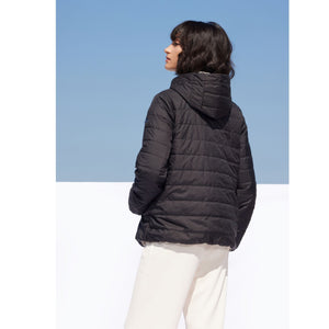 The Obi black jacket features a modern minimalist design with a clean silhouette. Created for versatile everyday wear, it combines elegance with practical comfort.