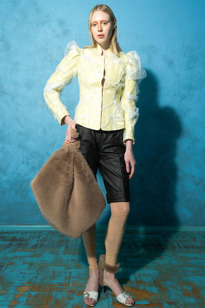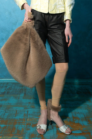 The Beige Mesh Spiral Leggings by MASHAT are semi-sheer, high-rise leggings crafted from stretch mesh in a soft beige tone. Featuring a unique spiral construction and an elasticized waistband, they offer a sculpted, modern silhouette—perfect for layering or statement styling.