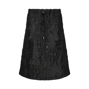 SELL WITH USThe Black Organza Trapeze Skirt with Quilted Signature Lips by MASHAT is a lightweight, double-layered organza satin midi skirt in a deep black tone. Featuring MASHAT’s signature quilted lips detailing and a paneled construction, it offers a voluminous, sculptural silhouette.