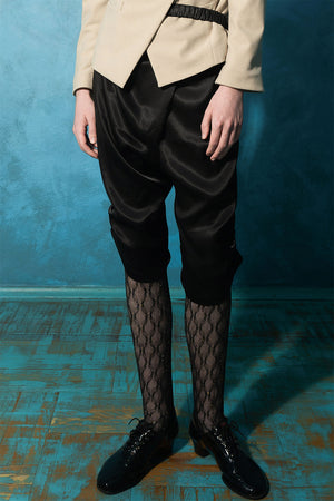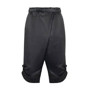 SELL WITH USThe Sharovary Shorts by MASHAT are viscose satin, capri-style long shorts available in golden, silver, and black tones. Featuring a wrap construction with a concealed two-button fastening at the waist and an additional satin-covered elasticized waistband, they offer both structure and comfort.