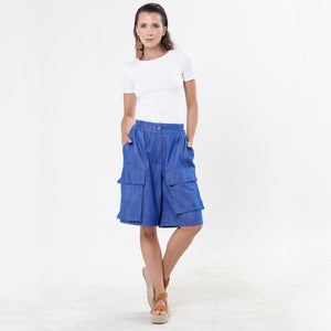 SELL WITH USEffortless cool meets functional design in these indigo blue denim cargo shorts by METAMORPHOZA. Crafted from breathable 100% cotton with a soft, unlined finish, these shorts are made for movement and ease. The relaxed wide-leg silhouette and elastic waistband with button closure offer everyday comfort, while the oversized cargo pockets add a utilitarian twist.