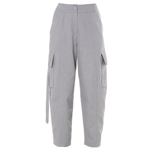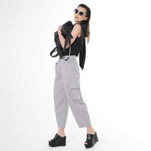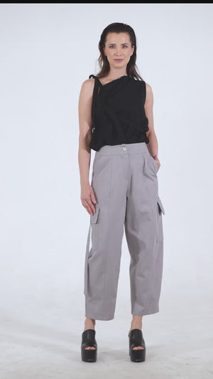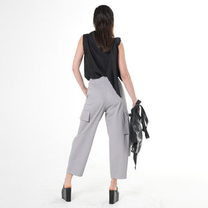 SELL WITH USThese cool grey denim pants feature a low-rise fit, slim hips, and a wide silhouette through the thigh and leg. Crafted from high-quality cotton denim, they offer functional side pockets and a cropped 7/8 length—perfect for effortless, everyday edge.
