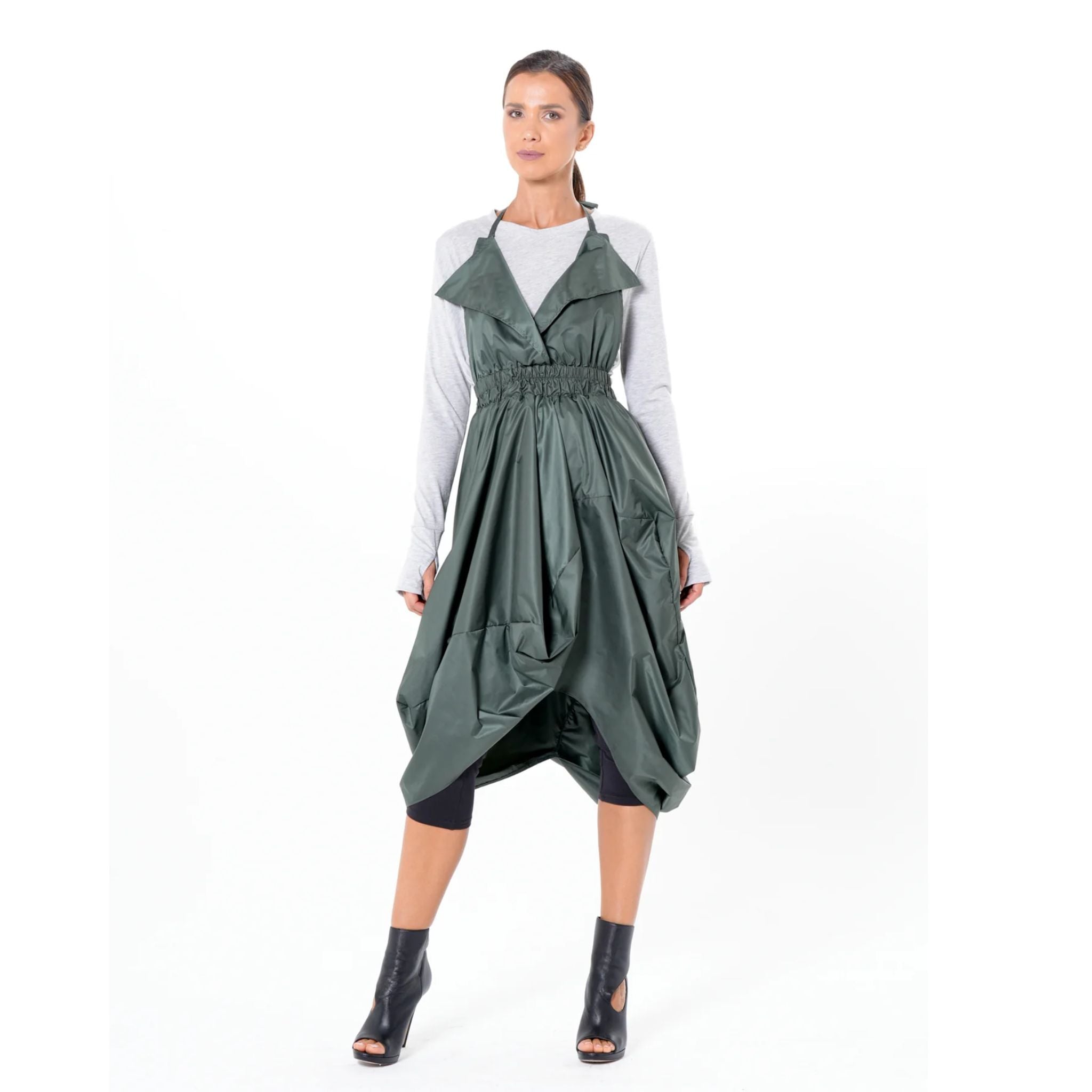 Elevate your layering game with this avant-garde pinafore, designed for bold dressers who appreciate sculptural silhouettes and effortless versatility. Crafted from a lightweight, subtly shiny fabric, it creates a dramatic balloon shape that moves beautifully and brings a modern, fashion-forward edge to any look.