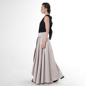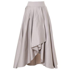 Designed with a low-rise fit and dramatic oversized hip volume, this satin cotton maxi skirt flows effortlessly with every step. Featuring an asymmetric hemline and hidden back zipper, it’s a lustrous, statement piece with elevated ease and modern edge.