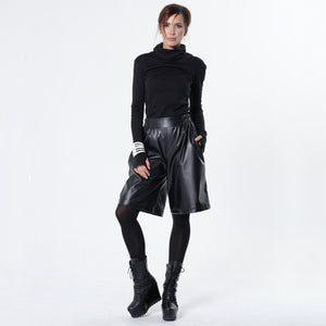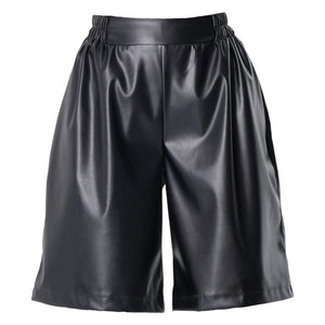 Elevate your everyday wardrobe with these faux-leather bermuda shorts, blending comfort with a sleek, modern edge. Made from soft vegan leather with a relaxed knee-length cut, they feature an elasticated waistband, clean front detailing, and side pockets for effortless wear. Available in warm brown and classic black, they’re an easy match for both casual and statement looks.