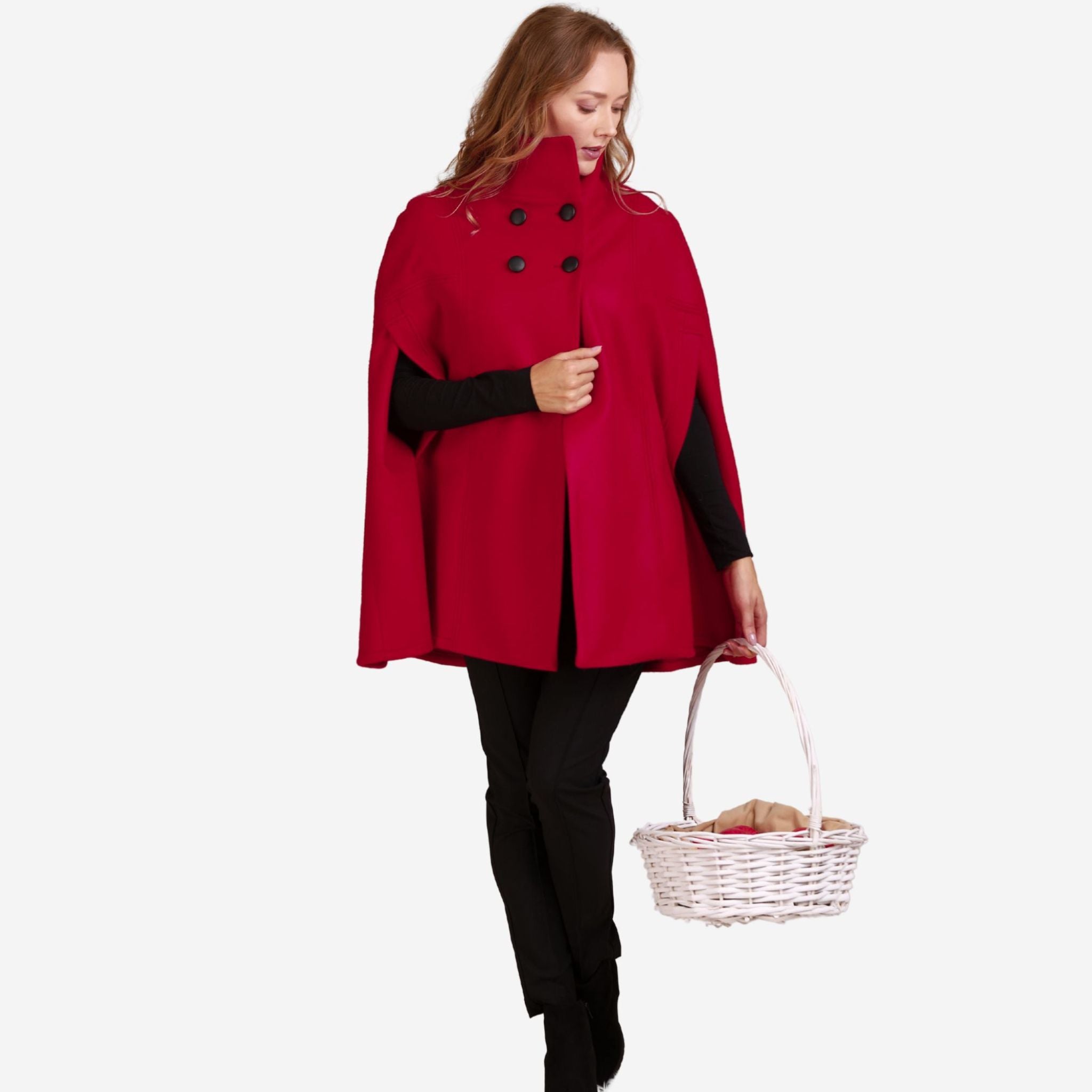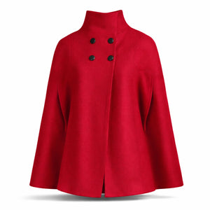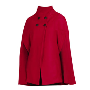 This elegant raspberry cape coat is the perfect addition to your wardrobe during the colder months. Made from a wool blend, it will keep you warm and stylish. The coat features a high collar and a button-front closure. The relaxed, dropped shoulders and mid-thigh length ensure exceptional comfort and a sophisticated look. For added comfort and warmth, the coat is fully lined. Its sleek, versatile design makes this elegant cape coat perfect for a night out or a day at the office.