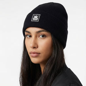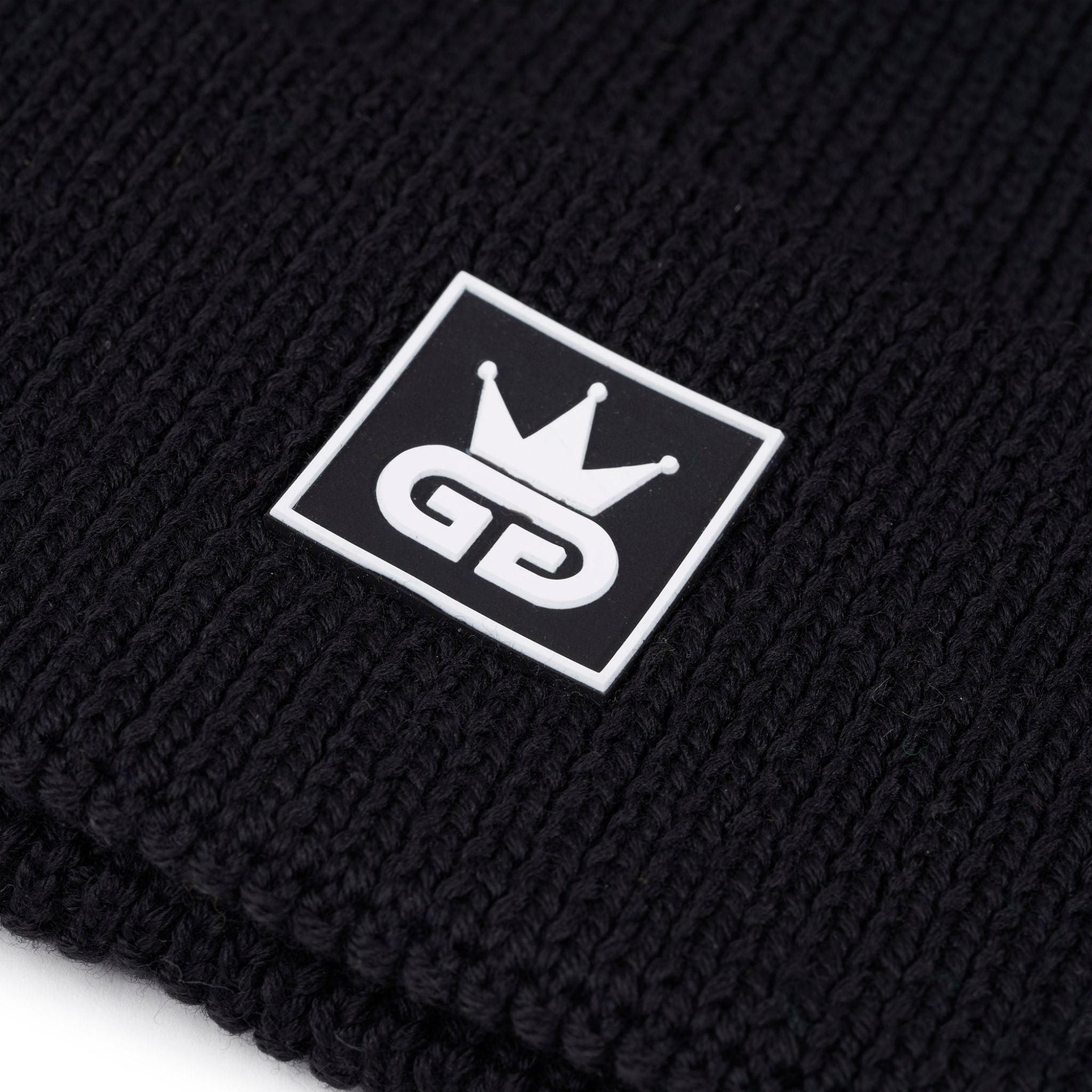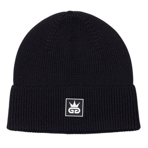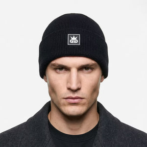 Deep black wool sets a confident foundation for this refined GGT knitted hat, finished with a crisp white-and-black rubber patch logo that speaks to understated authority. Designed with a clean ribbed knit and a regular fit, it delivers warmth without bulk, shaping naturally to the head for everyday comfort. The contrast logo adds a modern edge, making this hat a versatile essential that moves effortlessly between city wear and off-duty style.