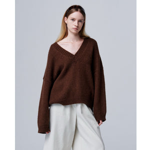 SELL WITH USThe Halo Mohair Knit by Oddpresent combines luxurious softness and warmth with a contemporary oversized silhouette. Made from a high-quality blend of alpaca mohair, wool, and synthetic fibers, this sweater offers a soft, lightweight feel while providing exceptional insulation. The V-neck adds a touch of elegance, while the long sleeves are designed to gently cover the hands, creating a cozy, enveloping fit.?Available in melange gray, ivory, chestnut, and navy, this sweater is perfect for layering in cooler weather or as a standalone piece for a refined yet casual look. With its oversized fit, it's ideal for anyone seeking comfort, warmth, and stylish relaxation.