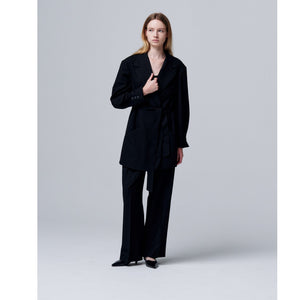 SELL WITH USThe Noir Cuff Blazer by Oddpresent redefines classic tailoring with a bold, sculptural approach. Featuring folded sleeve cuffs and a striking waist strap, this black blazer creates a unique silhouette that fuses avant-garde design with refined elegance. Its extended length offers a contemporary twist, while the tailored construction ensures sharp, structured lines. Perfect for those who appreciate versatility with drama, this blazer can be styled over a simple tee, paired with tailored pants, or worn over a dress for an edgy, modern look. The Noir Cuff Blazer brings sophistication with an innovative, minimalist edge, ideal for both professional and creative settings.
