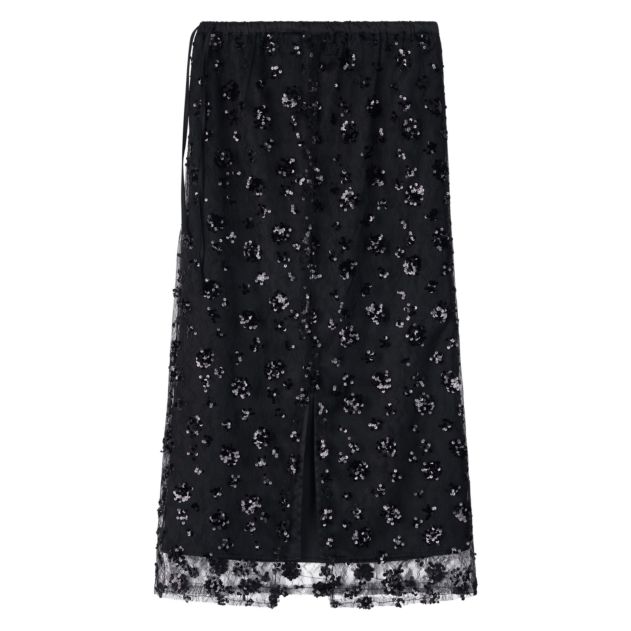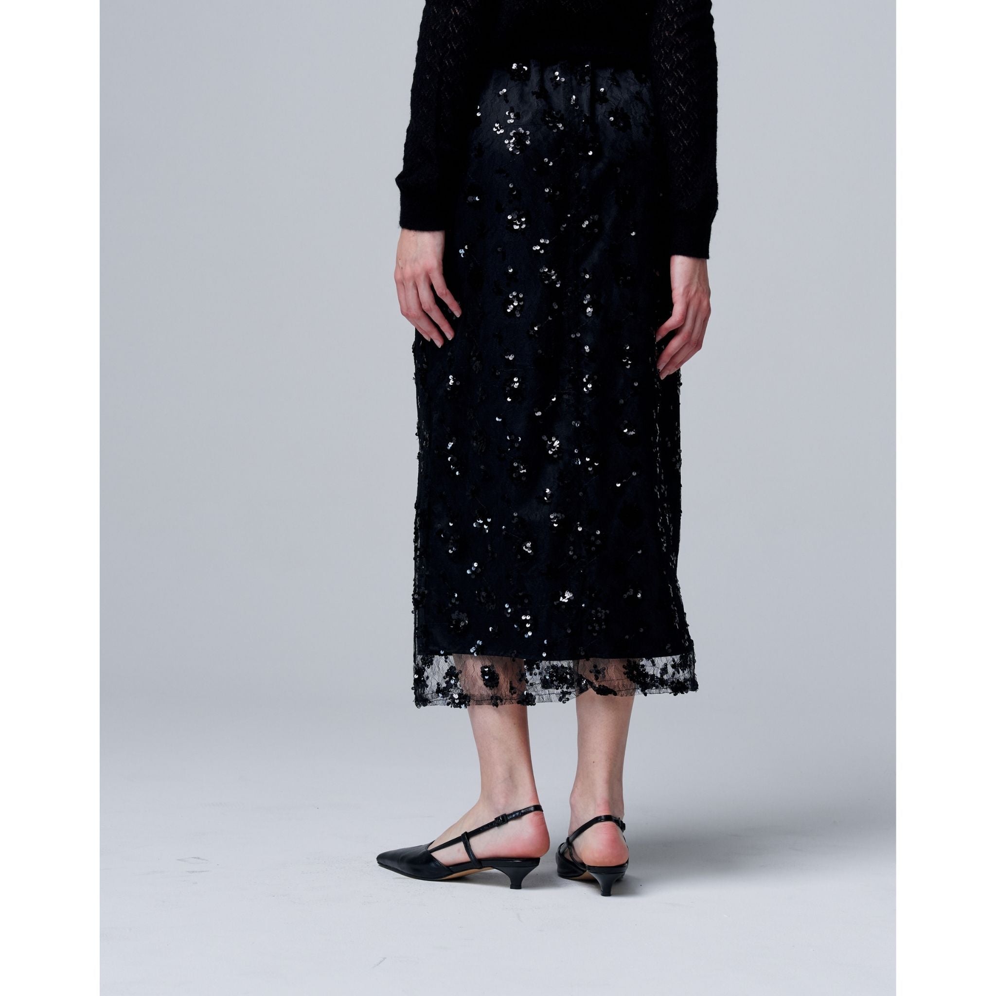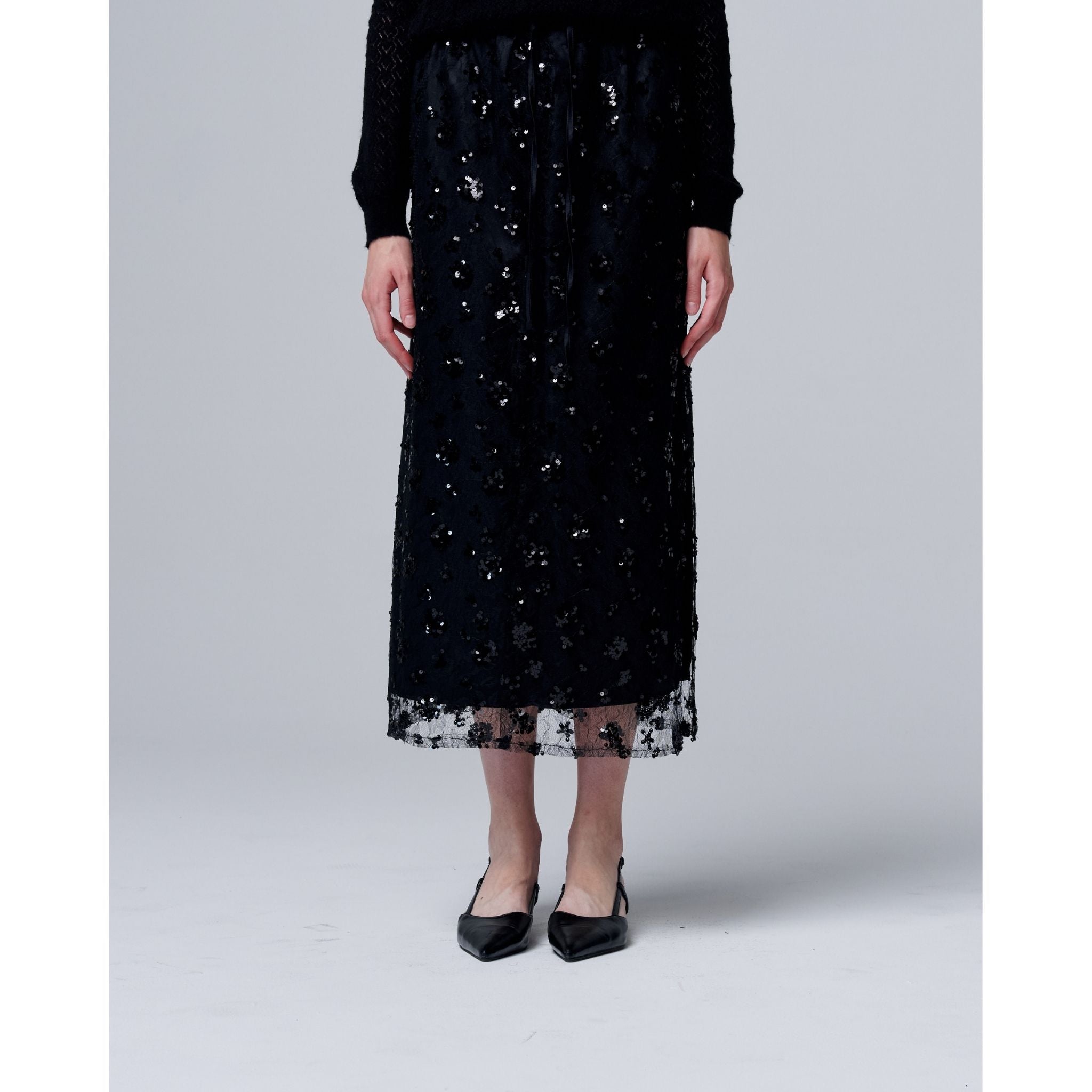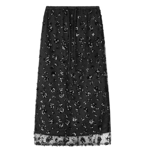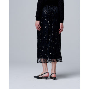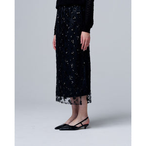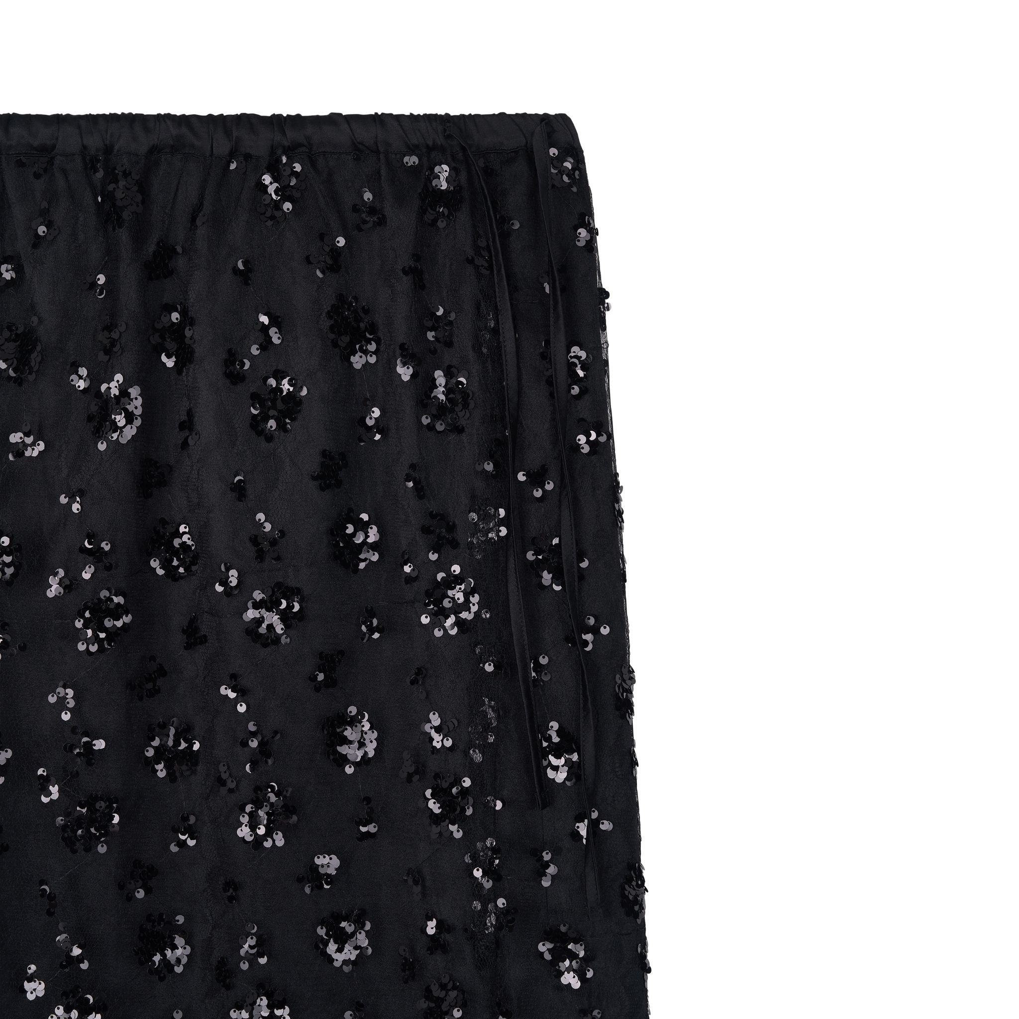 SELL WITH USThe Sequin Beaded Skirt by Oddpresent brings a touch of luxury to any wardrobe. Adorned with delicate sequin beaded floral designs, this skirt combines intricate craftsmanship with modern elegance. The back slit provides ease of movement, while the adjustable waist strap ensures a customizable fit for all body types. Available in black and silver, this skirt is perfect for evening events, weddings, or any special occasion that calls for a statement piece. Style it with a sleek top for a chic and polished look.