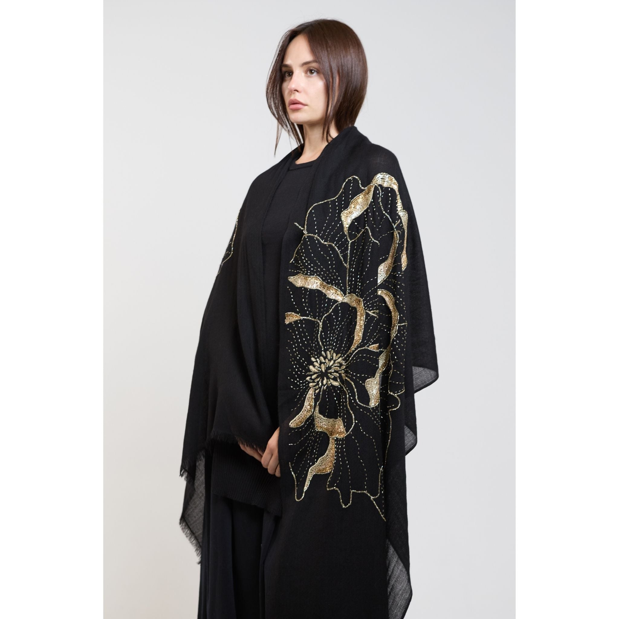 The Blythe by OO-TO is a definitive expression of quiet luxury, serving as the essential foundation for the AW25 wardrobe. Handcrafted by artisans in the heart of Nepal, this oversized stole is woven from 100% pure, high-altitude cashmere, offering a texture of incomparable softness and a drape that is both fluid and substantial. The deep, obsidian Black hue is achieved through a meticulous azo-free hand-dyeing process, ensuring a rich, permanent color that is entirely non-cancerous and safe for direct skin contact.