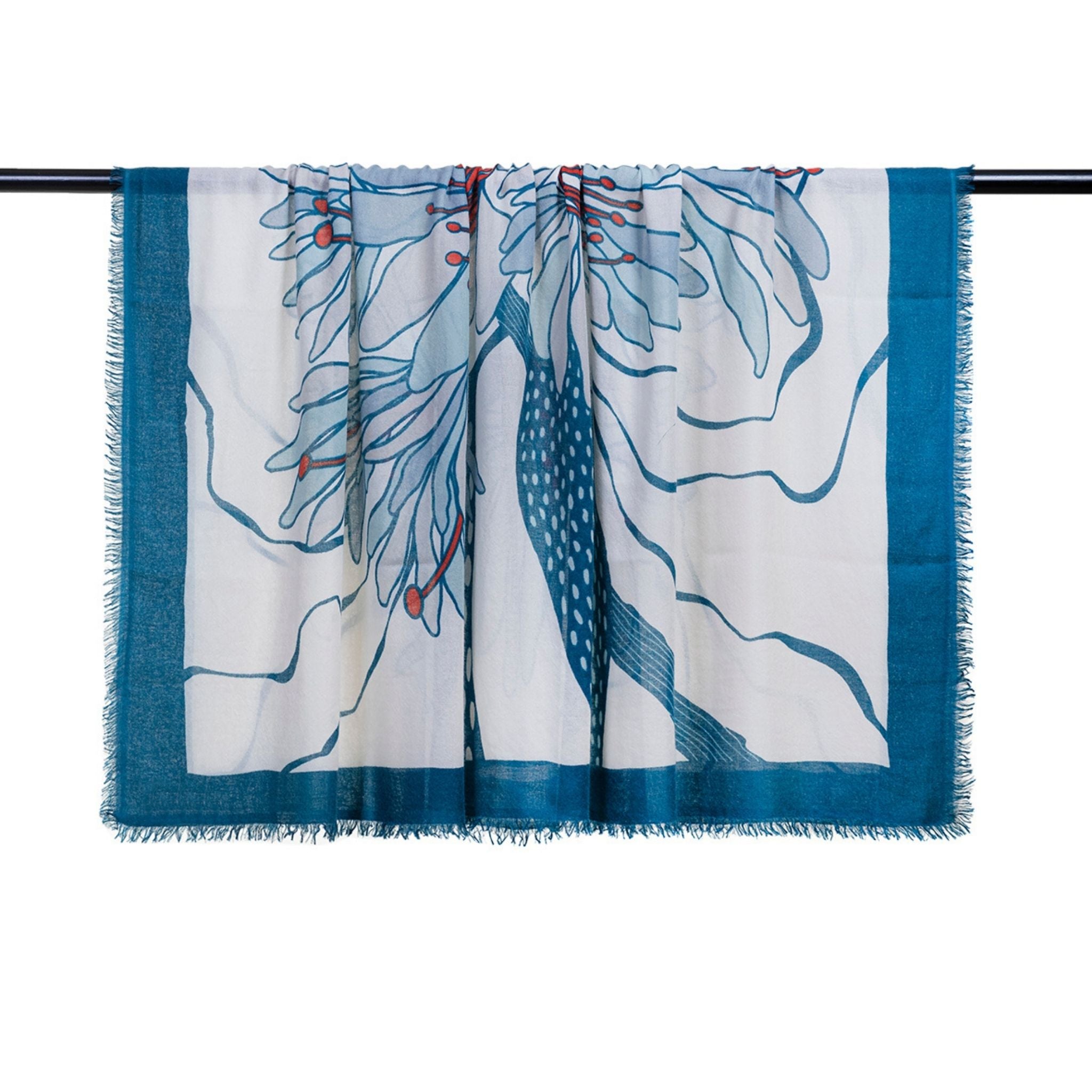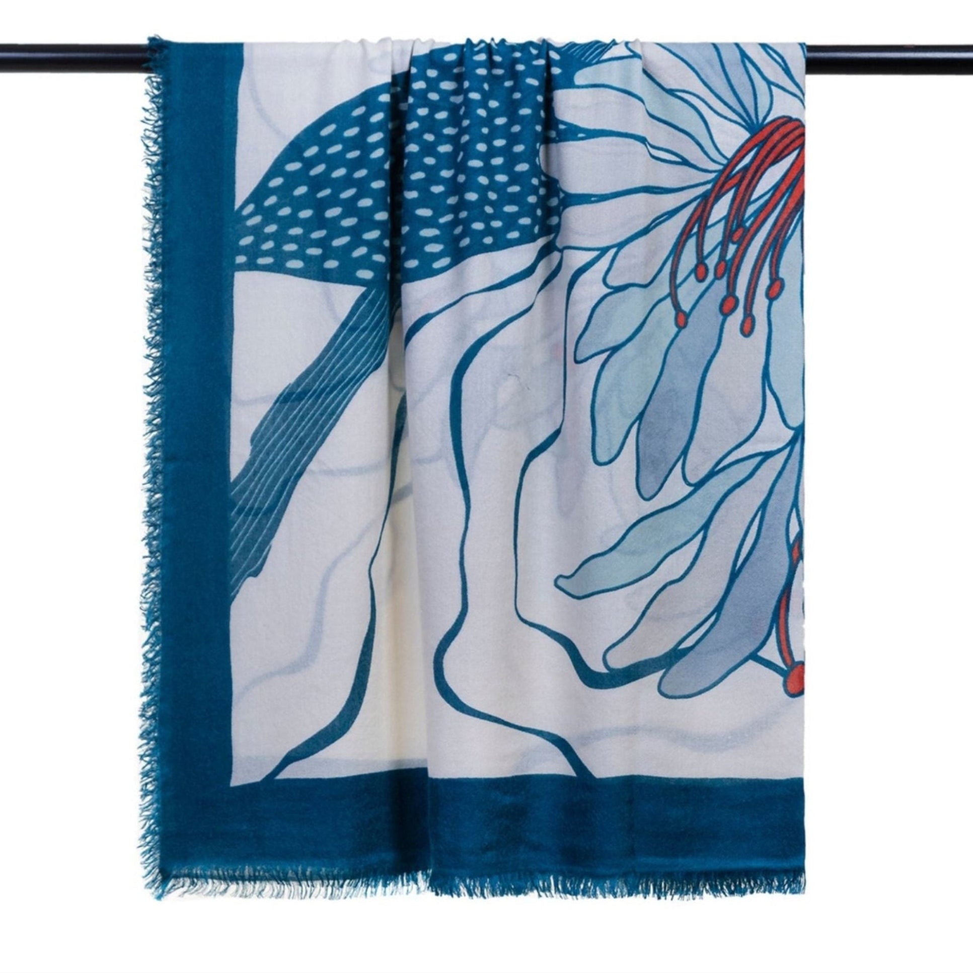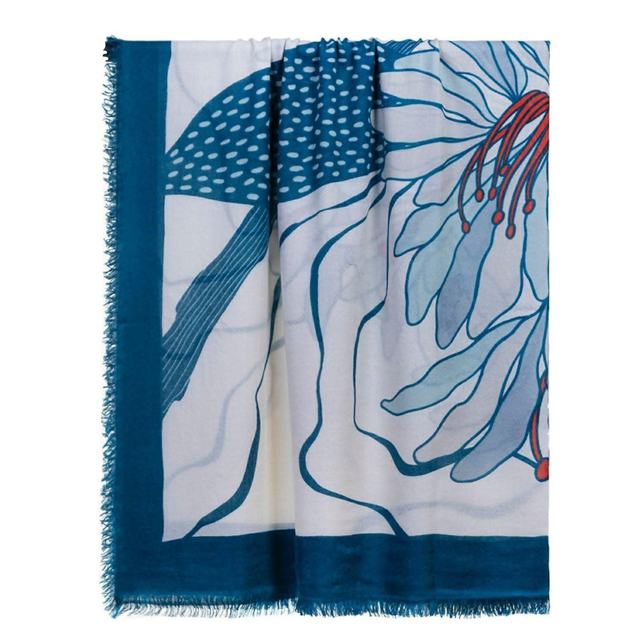The texture is exceptionally fine yet insulating, offering a delicate hand-feel that transitions beautifully from crisp autumn mornings to the height of winter. Its unique square dimensions provide endless styling versatility: fold it into a classic triangle for a chic, equestrian-inspired neck wrap, or drape it over the shoulders to showcase the rich tonal depths of the teal hues. Serving as an emotional bridge between ancient Himalayan heritage and modern, editorial elegance.