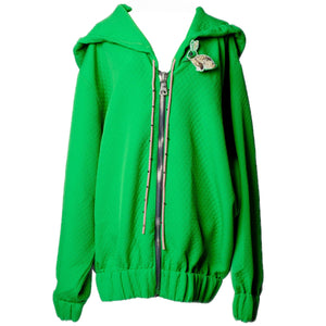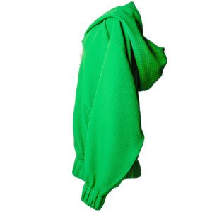 SELL WITH USA bold blend of comfort and couture, this green oversized hoodie by Otkutyr transforms everyday ease into a standout statement. Crafted from quilted textured fabric in a diamond pattern, the silhouette is voluminous yet fluid—designed for confident layering across seasons.