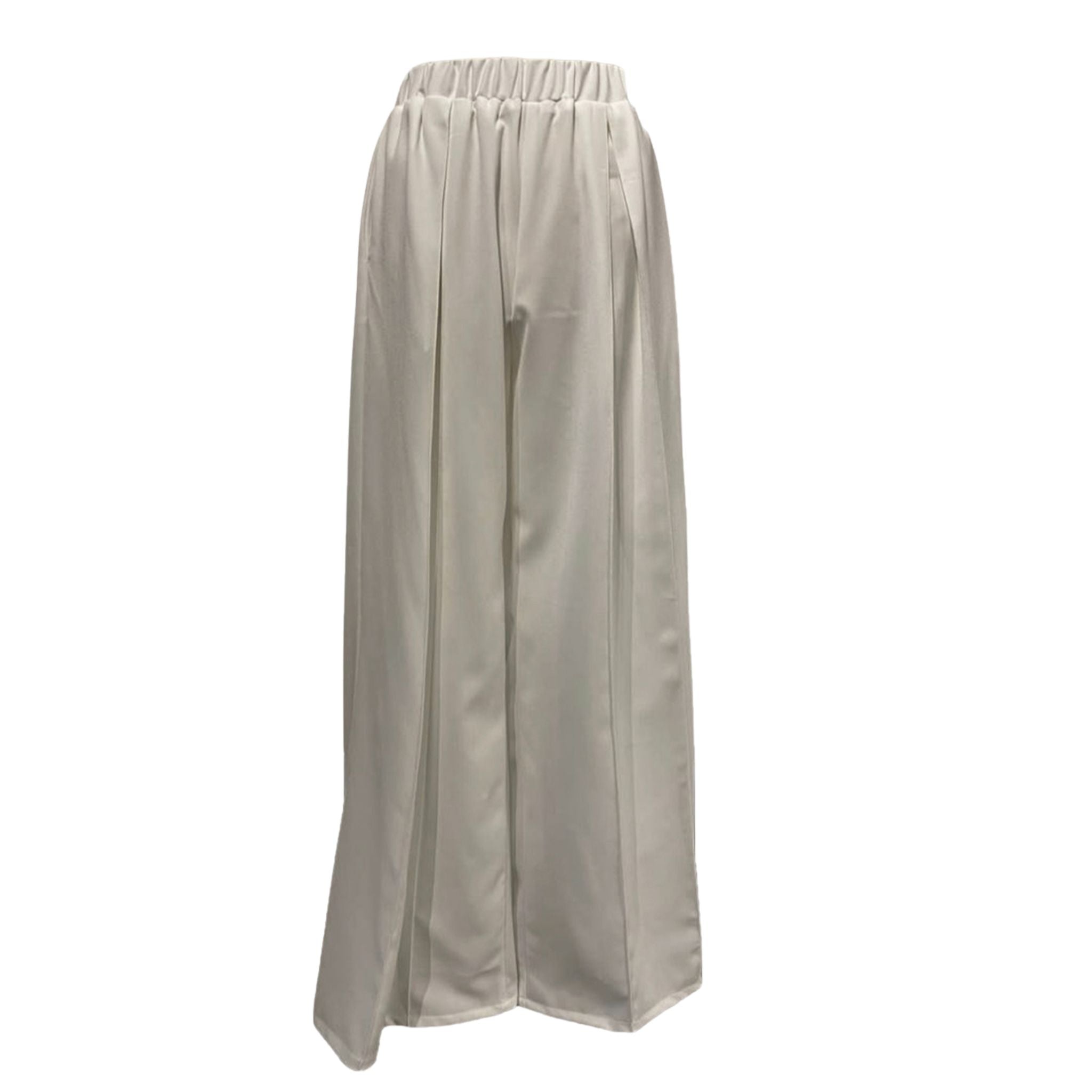 Breezy elegance meets urban polish in the Island Hopper, City Show Stopper pants. Cut from fluid white crepe, these wide-leg trousers feature soft front pleats, an easy pull-on elastic waistband, and discreet side pockets. The relaxed silhouette drapes beautifully, offering all-day comfort without sacrificing sophistication.