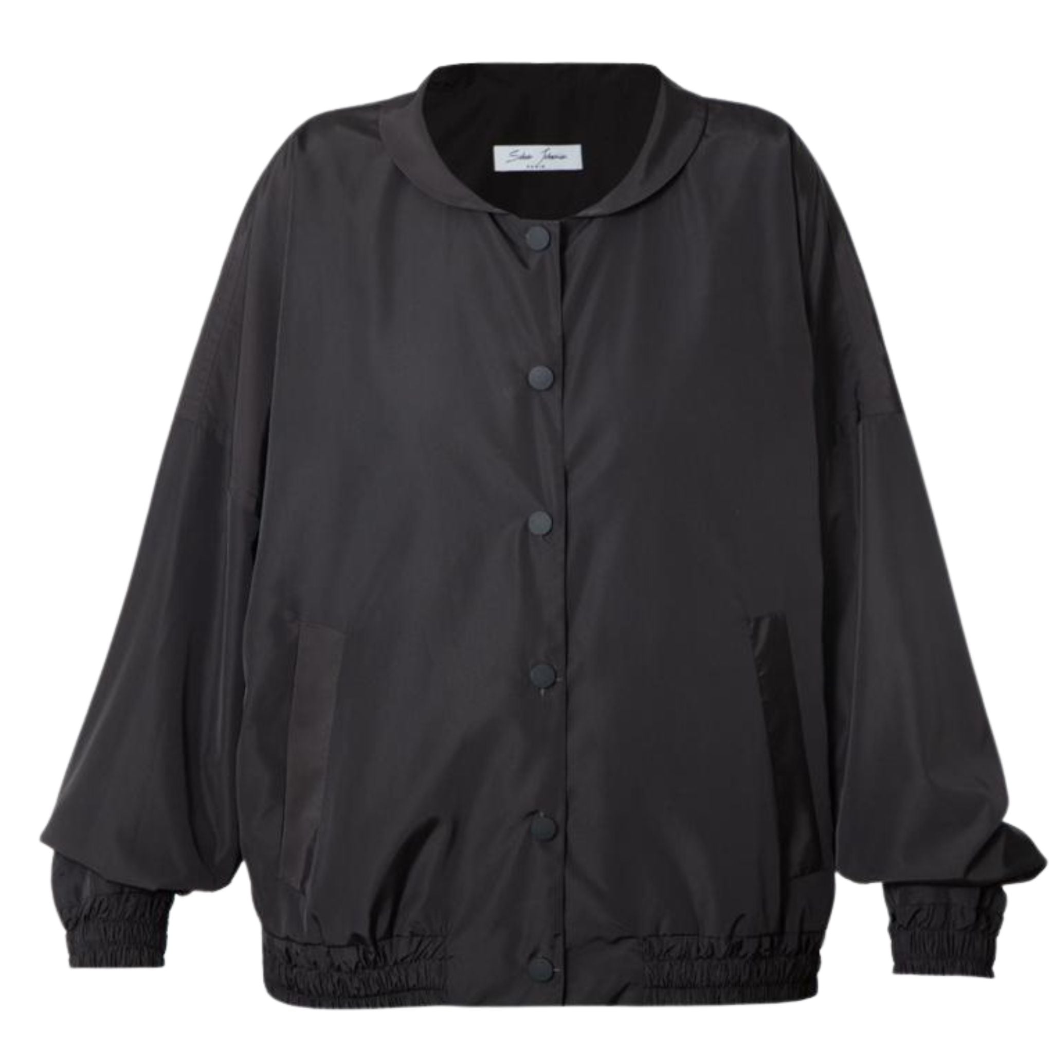 The Black Embroidered Bomber Jacket by SAHAR JABERIAN is an oversized reinterpretation of a classic bomber silhouette, elevated through subtle craftsmanship and symbolic detailing. Designed with a relaxed, voluminous shape, the Logo Nylon Bomber jacket features silk embroidery on the back, adding a quiet yet powerful narrative element that reflects the identity of SAHAR JABERIAN. Elasticated cuffs and hem create a balanced structure, while the snap-button front allows effortless layering. The oversized fit is intentional, offering a sense of protection and ease. The Logo Bomber Jacket functions as both an everyday outer layer and a statement piece, seamlessly blending utility with poetic design.