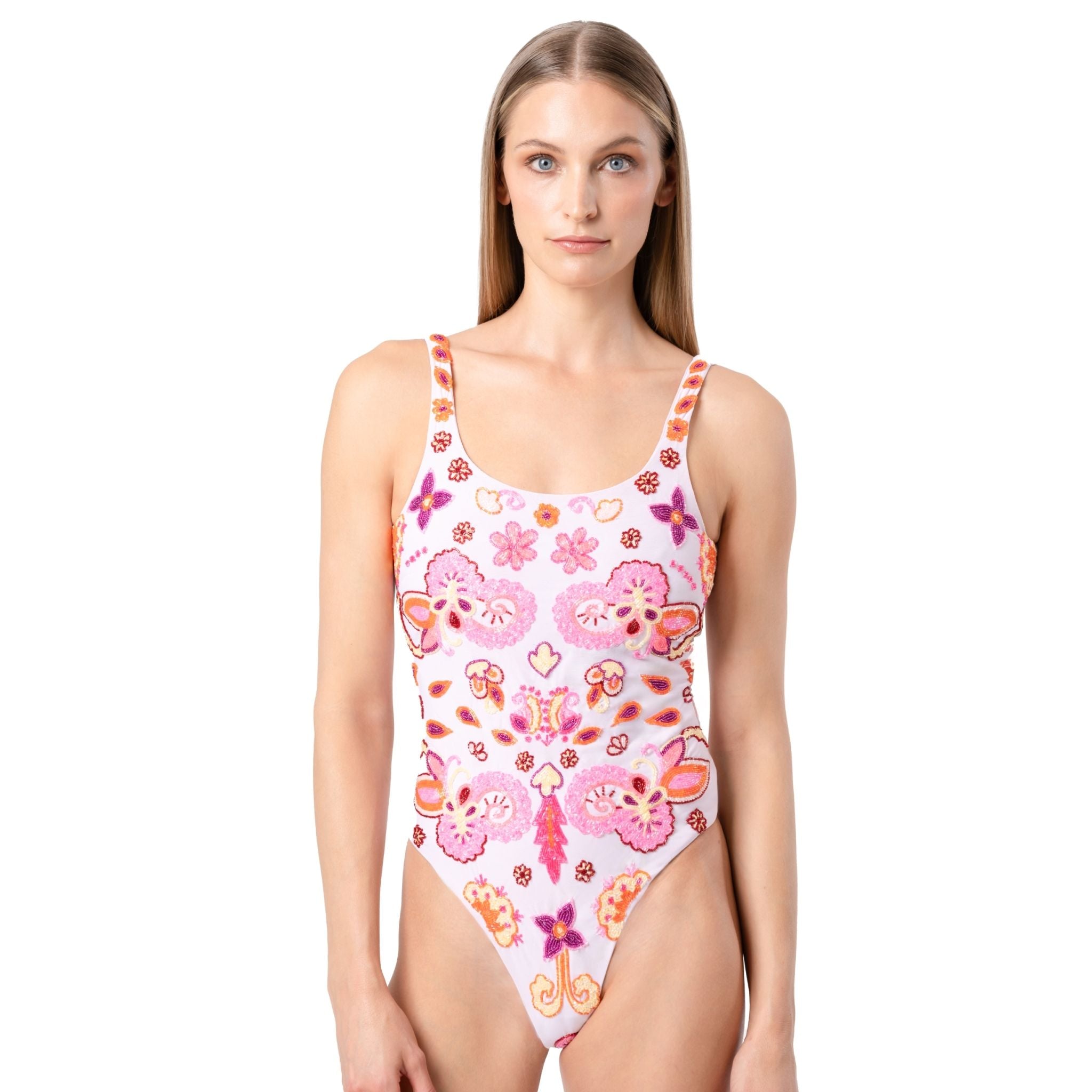 The Floral Fiesta Hand-Beaded Embellished One-Piece Swimsuit bursts with vibrant energy and artisanal detail. Adorned with hand-beaded floral motifs throughout, it captures the spirit of celebration. Designed for resort moments and sun-drenched destinations, this piece brings colour, texture, and luxury to every escape.