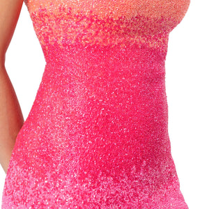 Inspired by the soft gradient of a sunset, this Ombre Hand-Beaded Embellished Mini Dress exudes effortless luxury. Each piece is meticulously hand-beaded by artisans, creating a luminous finish that catches the light with every step. The sculpted silhouette, embellished texture, and shimmering ombré tones make it the perfect statement for elevated evenings, special occasions, or unforgettable nights out.