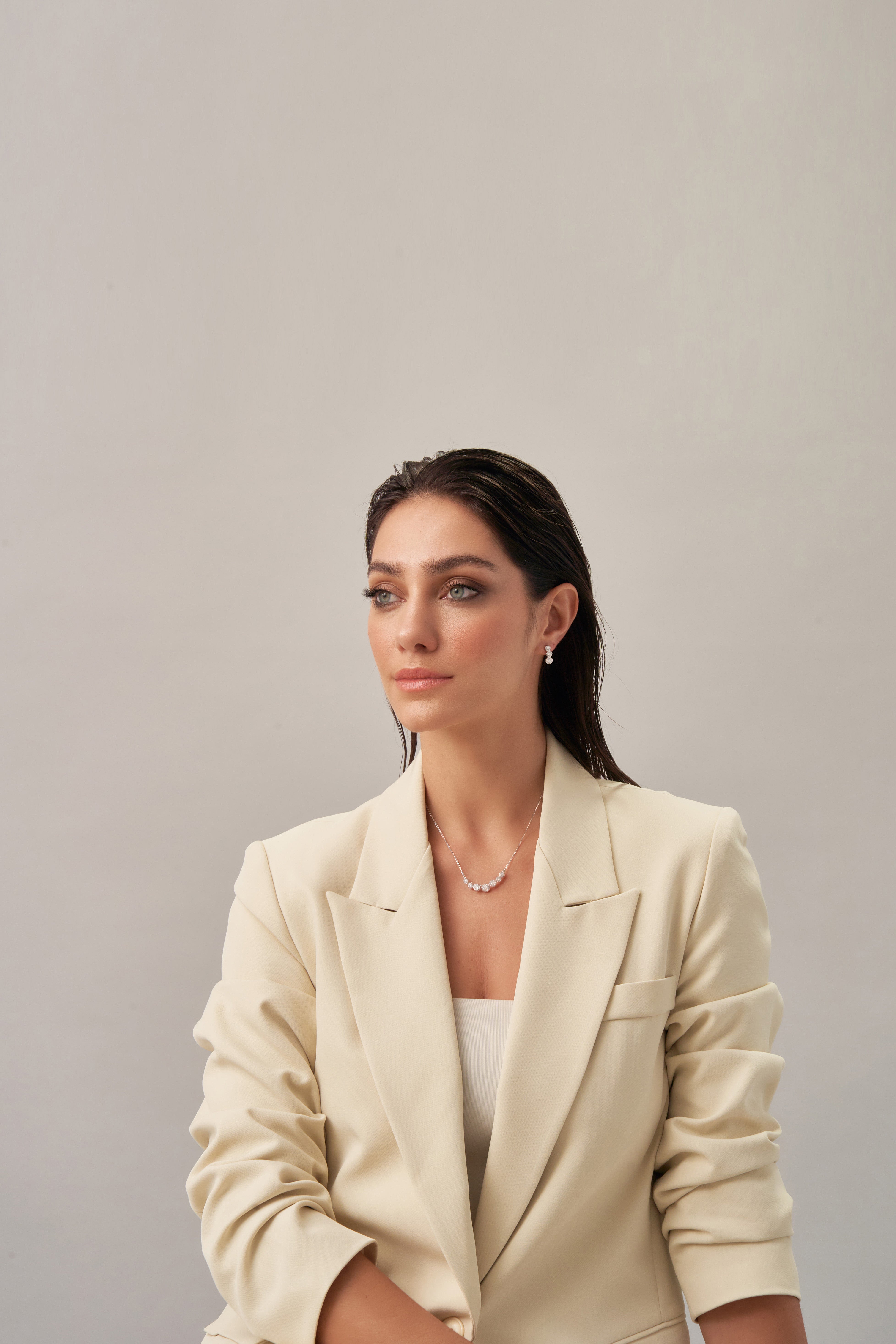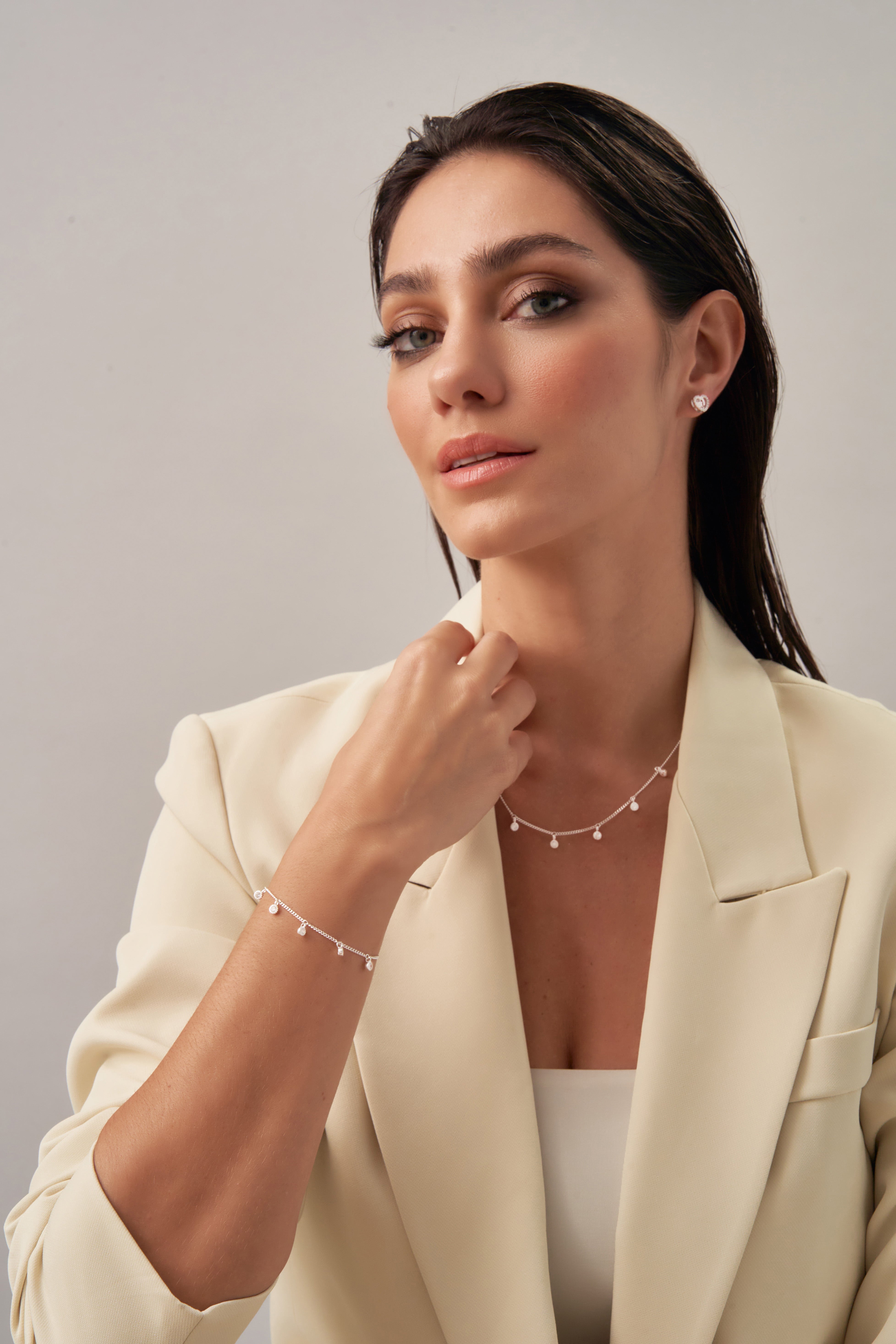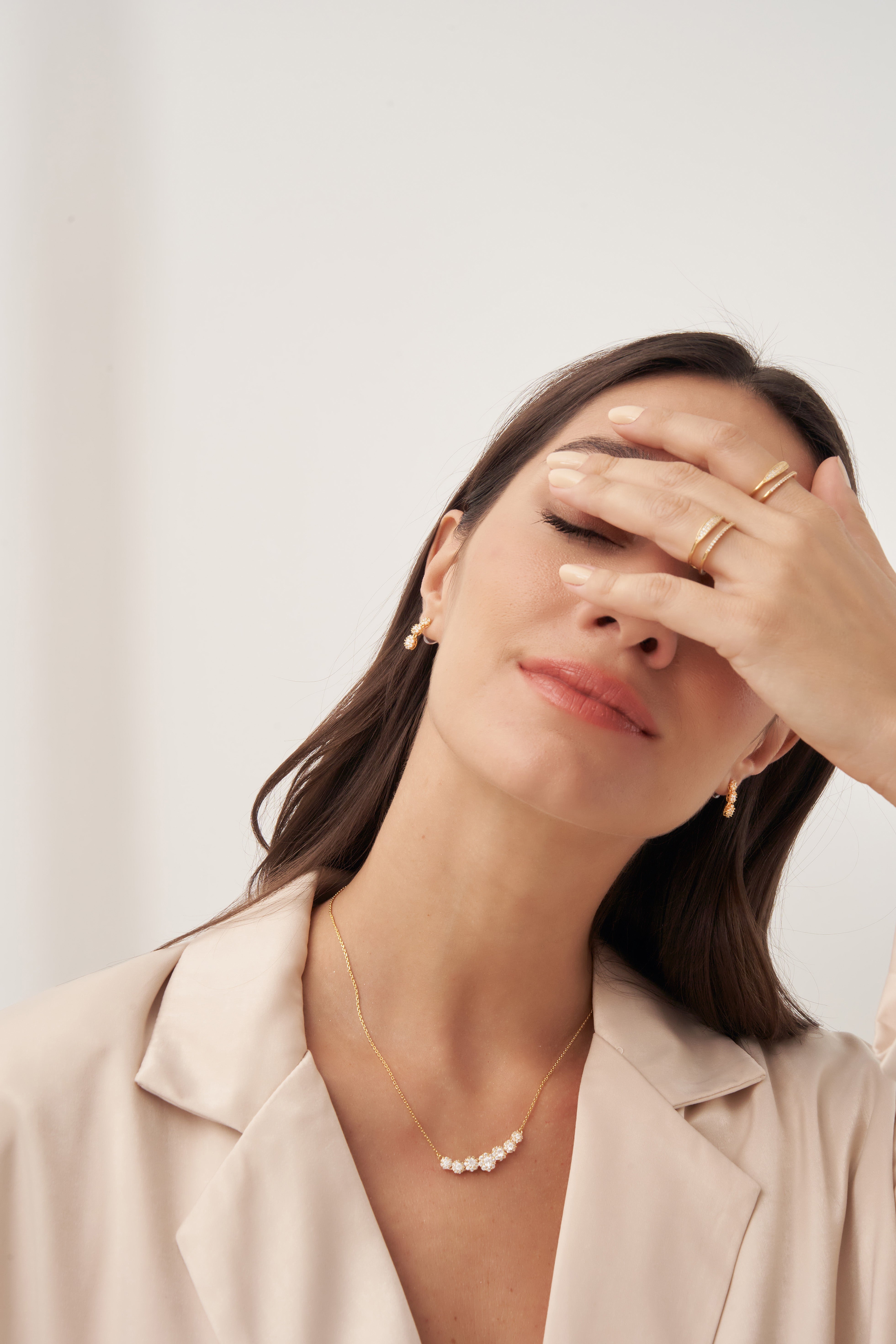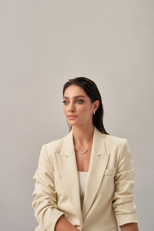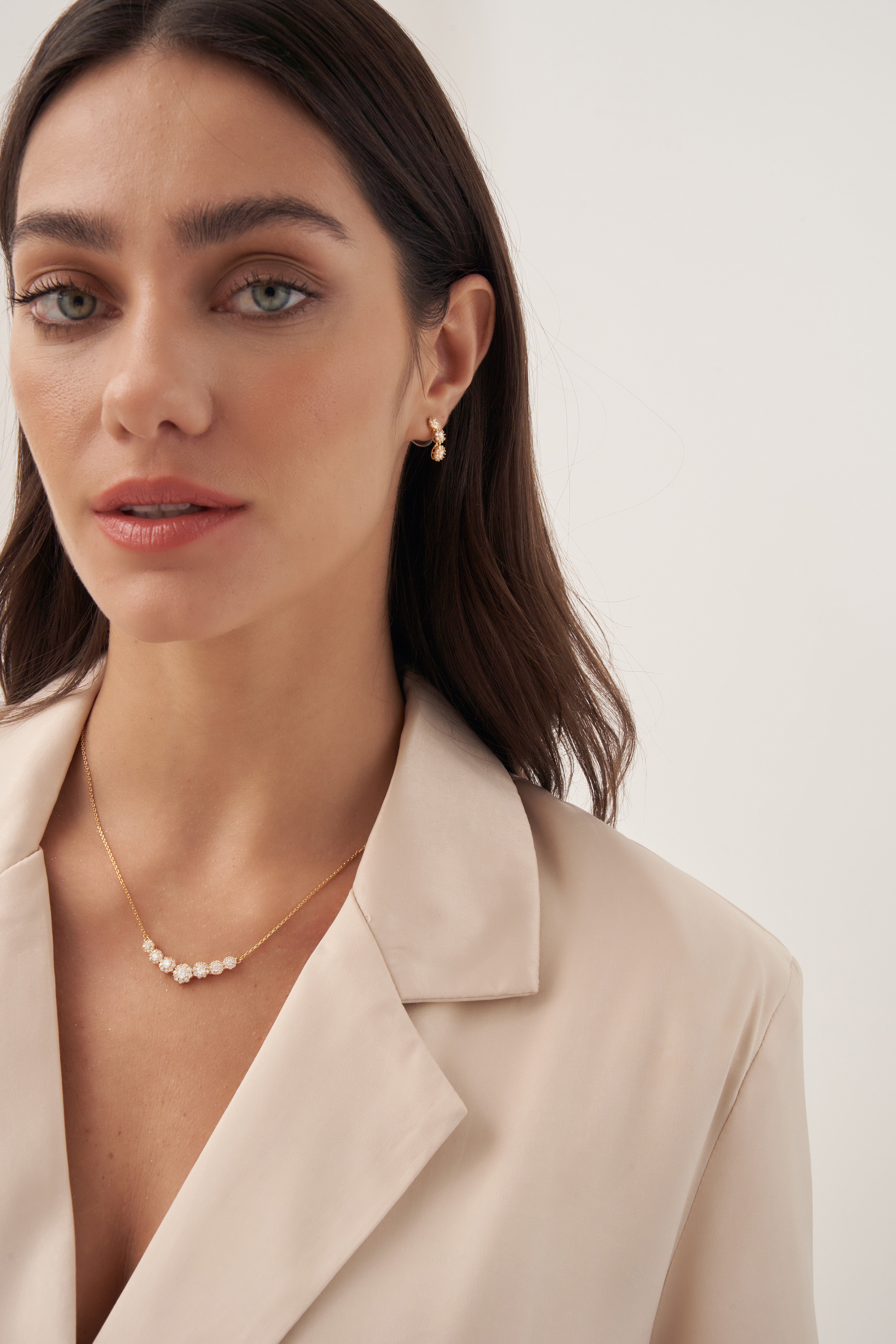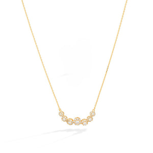 Romantic and radiant, the Eternal Blossoms Necklace by Xhin + Shabella captures the ephemeral beauty of blooming florals—forever frozen in golden light. Crafted with a curved row of intricate flower-like clusters, each set with luminous cubic zirconia, this necklace is designed to draw the eye while remaining lightweight and wearable. The 14k gold-tone chain enhances the feminine sparkle, making it ideal for layering or as a delicate solo statement. Hypoallergenic and nickel-free, it’s as gentle on skin as it is on the planet. Exclusively crafted in small batches for DOORS.NYC, this piece brings poetic elegance to everyday styling.