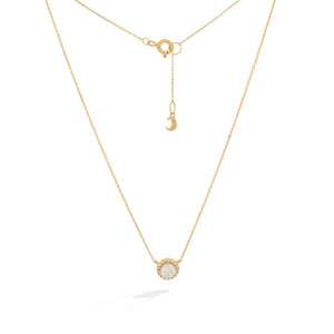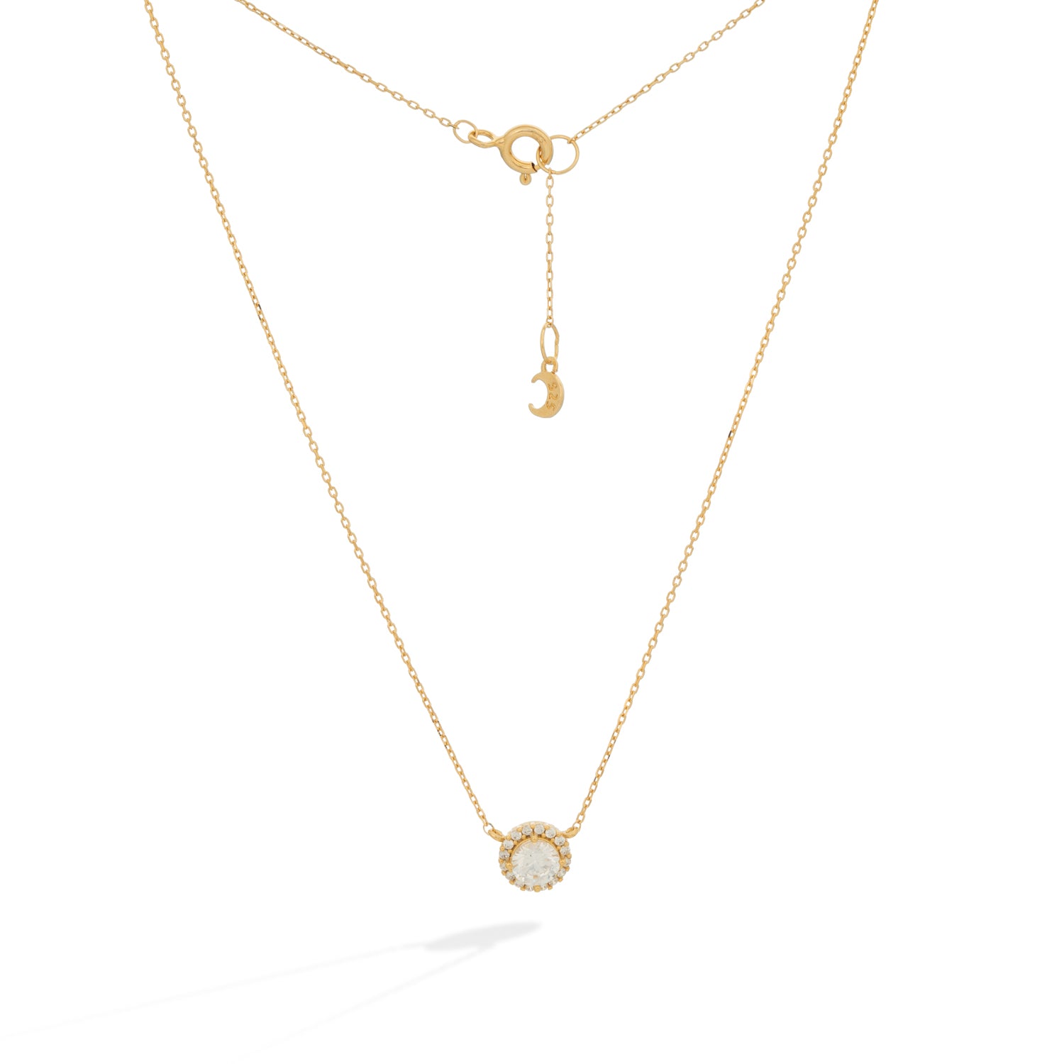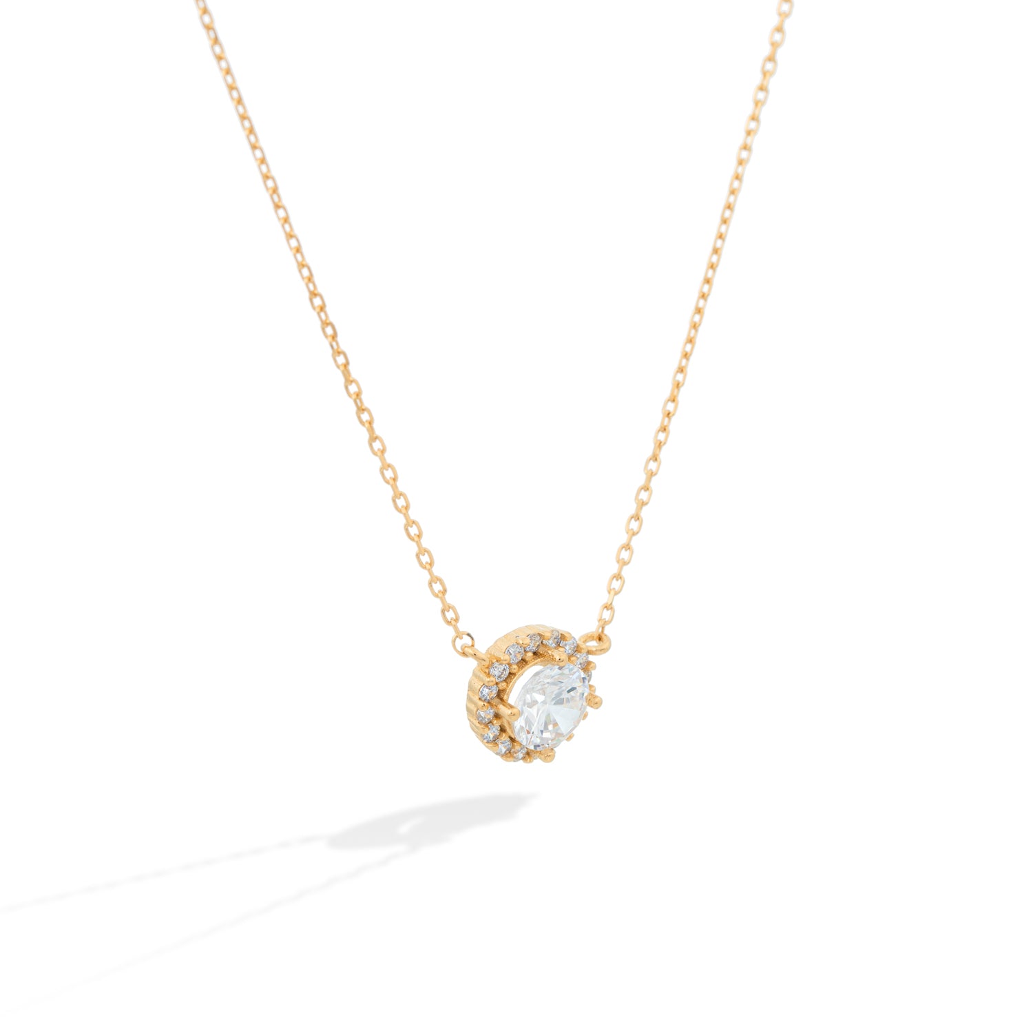 SELL WITH USTimelessly radiant, the Lomière Necklace by Xhin + Shabella captures the essence of quiet elegance. Suspended on a fine gold-toned chain, its luminous simulated A7 center stone is encircled by a halo of precision-cut cubic zirconia — a refined sparkle that feels both modern and classic. Lightweight and hypoallergenic, it's crafted without nickel for everyday comfort. Whether layered with minimalist chains or worn solo against bare skin, this piece delivers understated luxury that seamlessly transitions from office to evening. Designed by an independent label, available exclusively in limited quantities at DOORS.NYC.