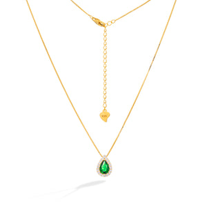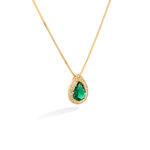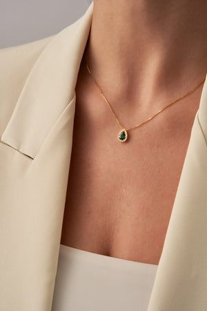 A vision of timeless allure, the Starlight Emerald Necklace by Xhin + Shabella features a rich, emerald-green teardrop stone embraced by a sparkling halo of clear zirconia. Set on a sleek gold-toned chain, the pendant evokes old-world glamour with a distinctly modern finish. The deep green hue channels elegance and sophistication, while the hypoallergenic, nickel-free design ensures everyday comfort. Ideal for soirées, gifting, or elevating a crisp white shirt, this piece is an instant classic—refined, radiant, and ethically crafted in small batches.