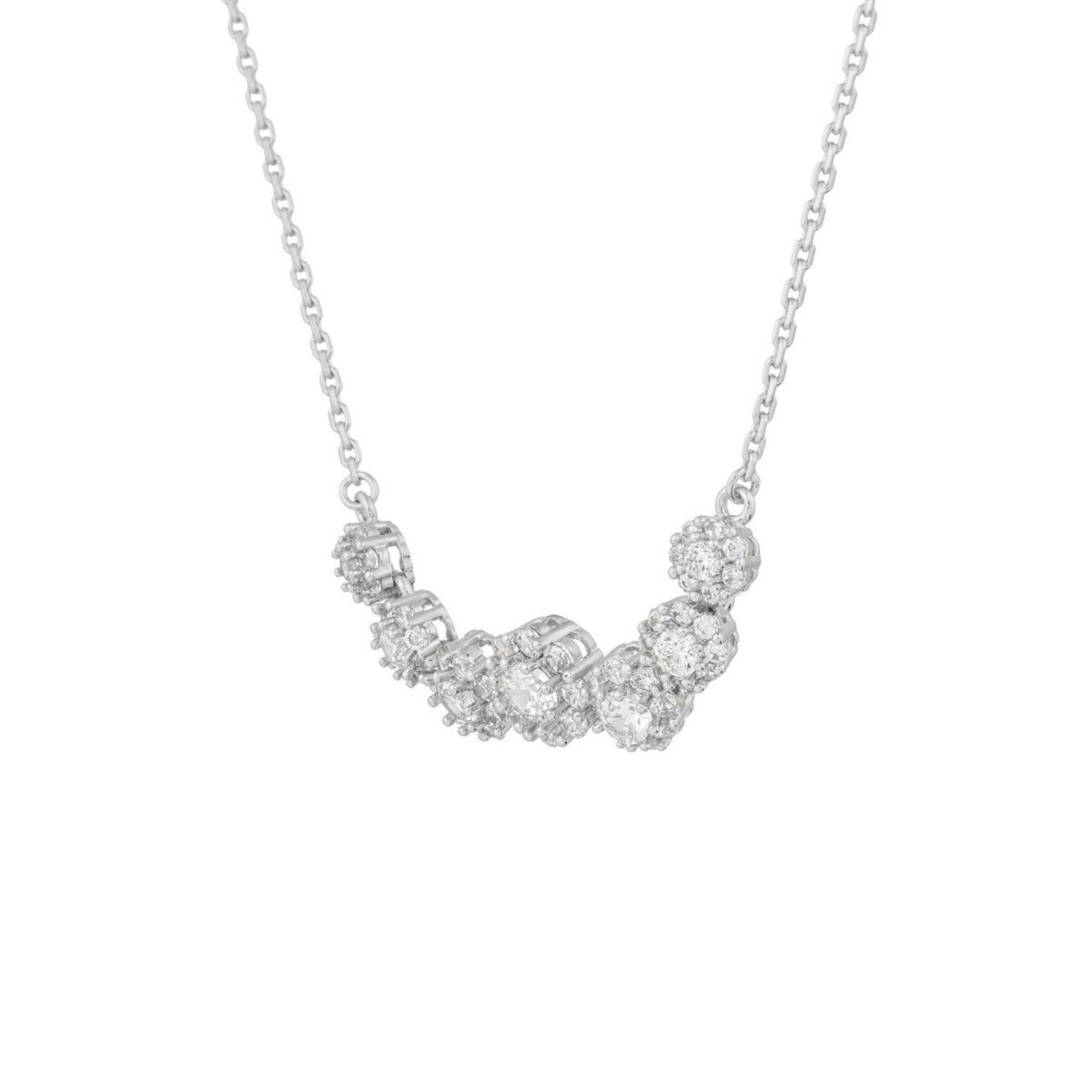 Delicate yet dazzling, the Silver Eternal Blossoms Necklace by Xhin + Shabella evokes the elegance of blooming florals frozen in time. Set on a fine silver-toned chain, its sculptural arc of flower-like clusters sparkles with precisely cut cubic zirconia—offering a refined shimmer from every angle. Lightweight and hypoallergenic, it’s designed to feel like a second skin while adding just the right touch of romance to your neckline. Wear it layered for an ethereal effect or solo to let its floral charm shine. Ethically produced in limited quantities, this necklace speaks to DOORS.NYC’s devotion to modern heirlooms and independent design.