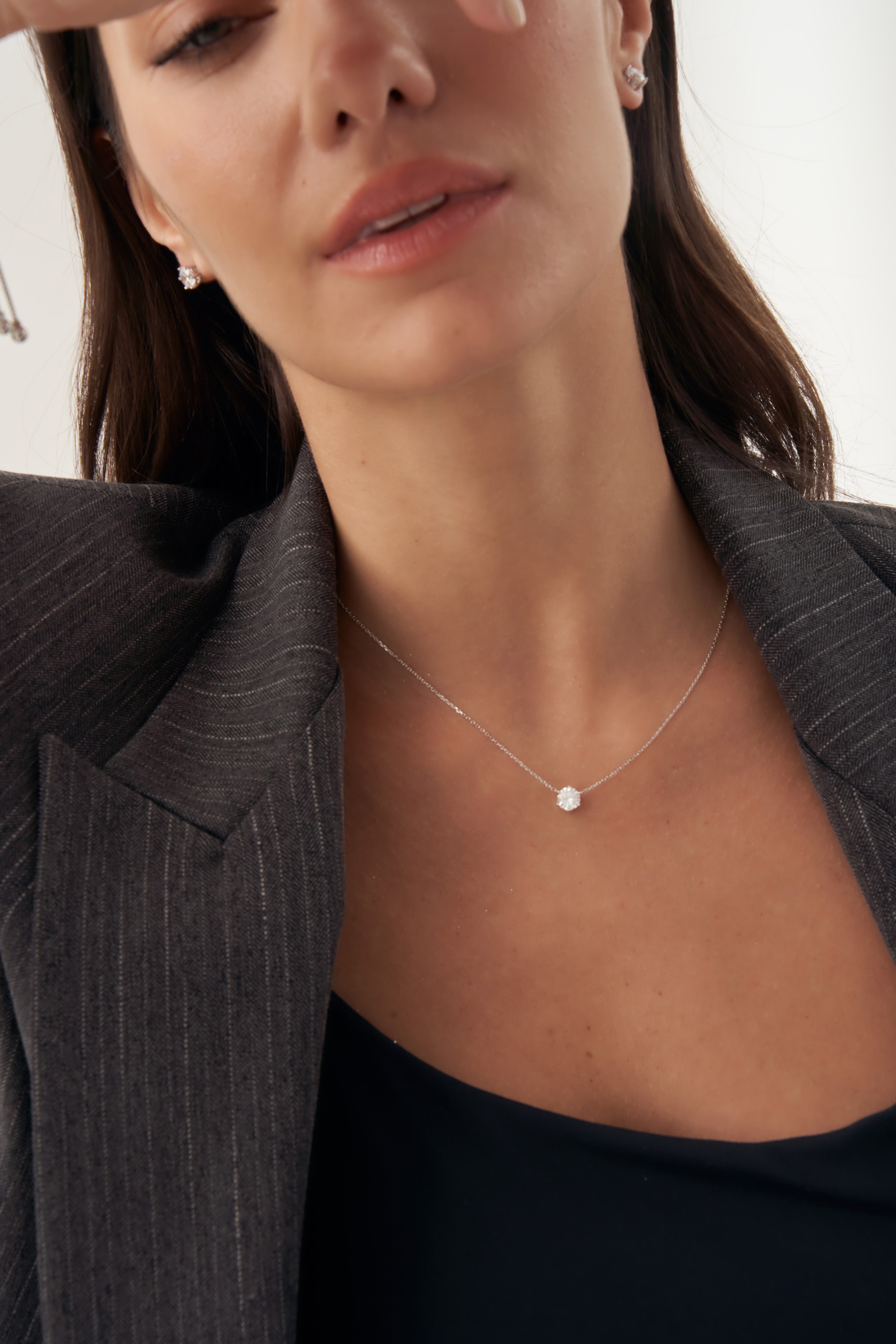 The definition of understated elegance, the Classic Crystal Necklace by Xhin + Shabella features a brilliant round-cut crystal suspended from a fine silver-toned chain. This timeless piece is as effortless as it is eye-catching—designed to elevate everyday dressing or add refined sparkle to evening looks. Lightweight and impeccably polished, it sits delicately at the collarbone for a barely-there feel with maximum impact. Finished with a celestial crescent moon charm at the clasp, it blends classic minimalism with a whisper of the whimsical. Ethically crafted in small batches.