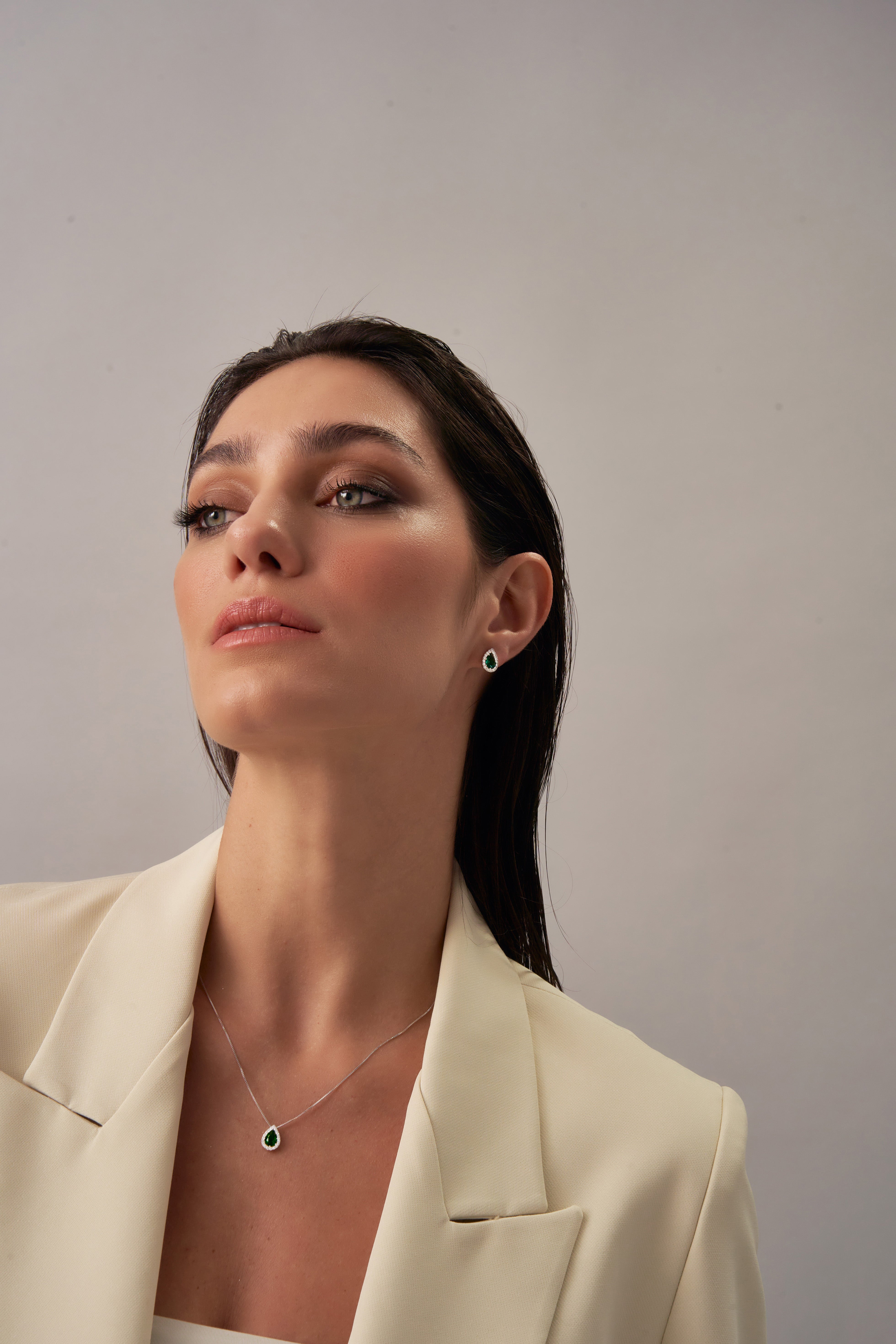 A vision of timeless allure, the Starlight Emerald Necklace by Xhin + Shabella features a rich, emerald-green teardrop stone embraced by a sparkling halo of clear zirconia. Set on a sleek silver-toned chain, the pendant evokes old-world glamour with a distinctly modern finish. The deep green hue channels elegance and sophistication, while the hypoallergenic, nickel-free design ensures everyday comfort. Ideal for soirées, gifting, or elevating a crisp white shirt, this piece is an instant classic—refined, radiant, and ethically crafted in small batches.