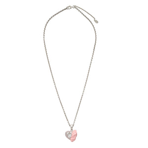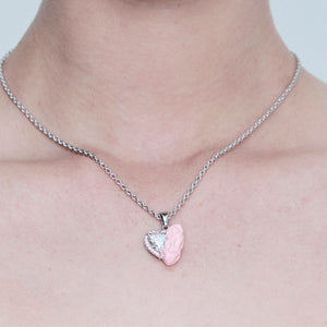 SELL WITH USLove, chewed up and made beautiful. The Heart Necklace | Pink by TAL MASLAVI reimagines romance through a surrealist lens - where sweetness meets decay, and sparkle meets satire. Crafted from 925 sterling silver coated in rhodium, the pendant features a transparent heart-cut zirconia framed by blush pink pavé stones, partially engulfed in sculpted, glossy pink enamel gum.