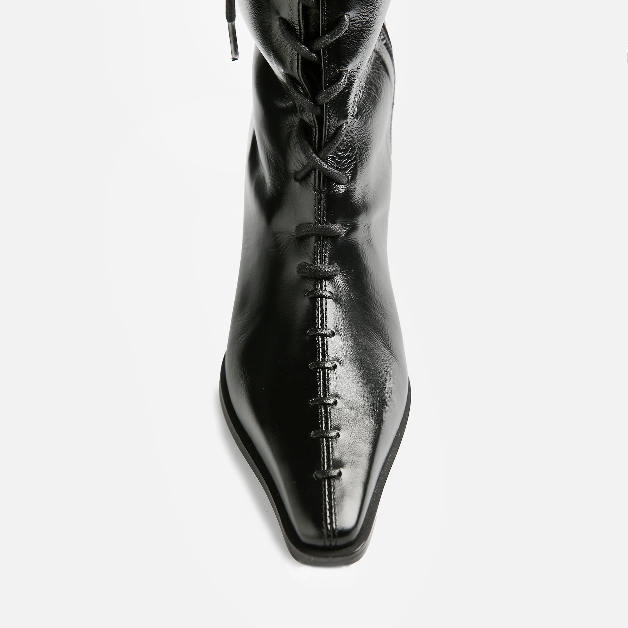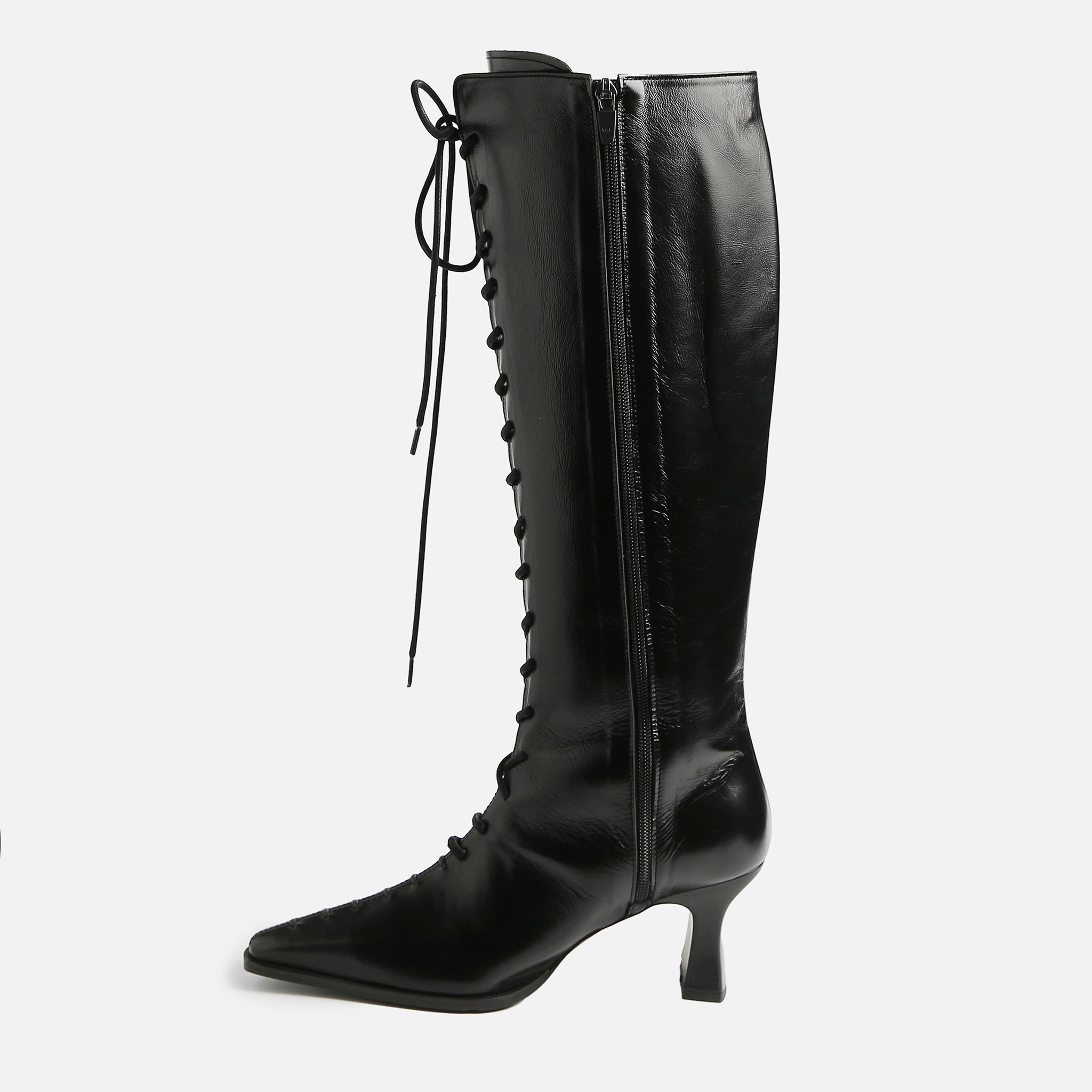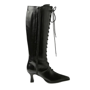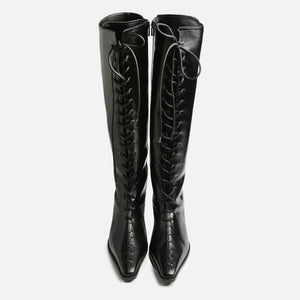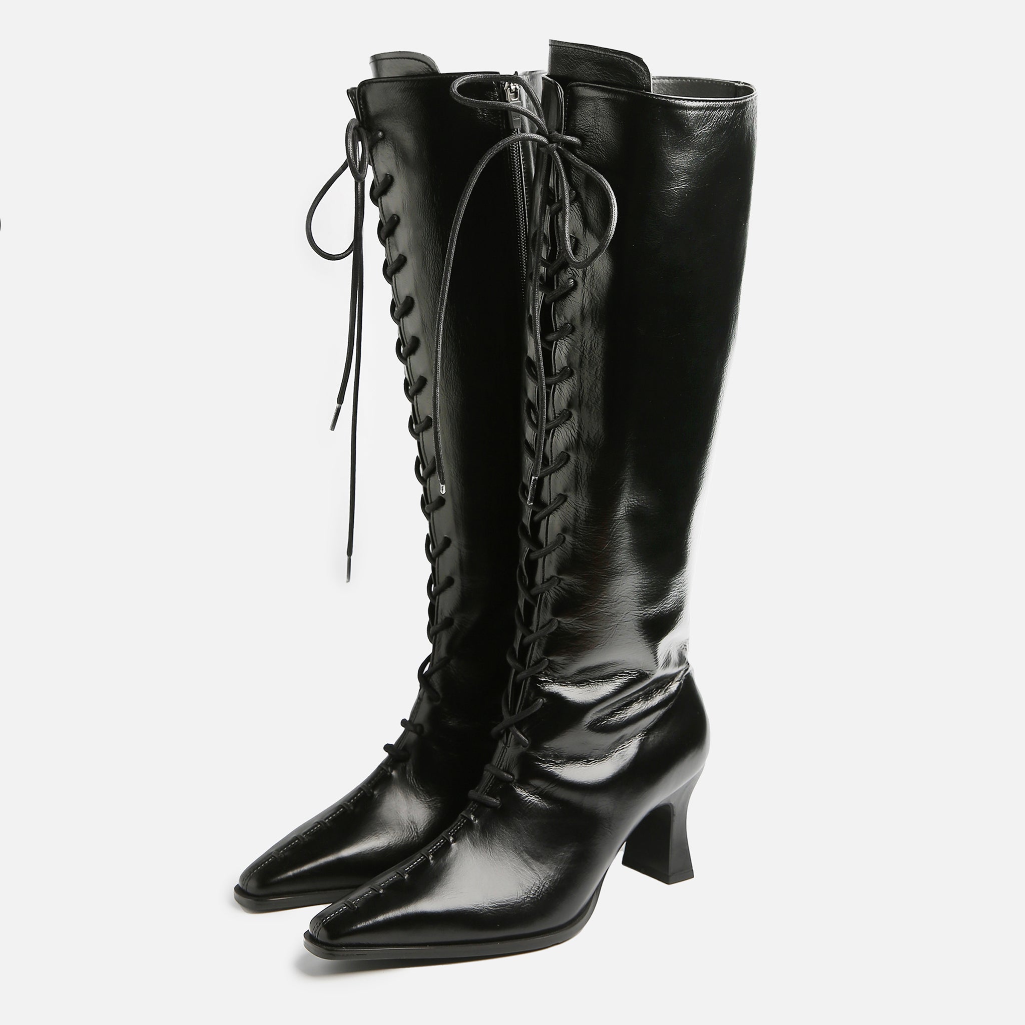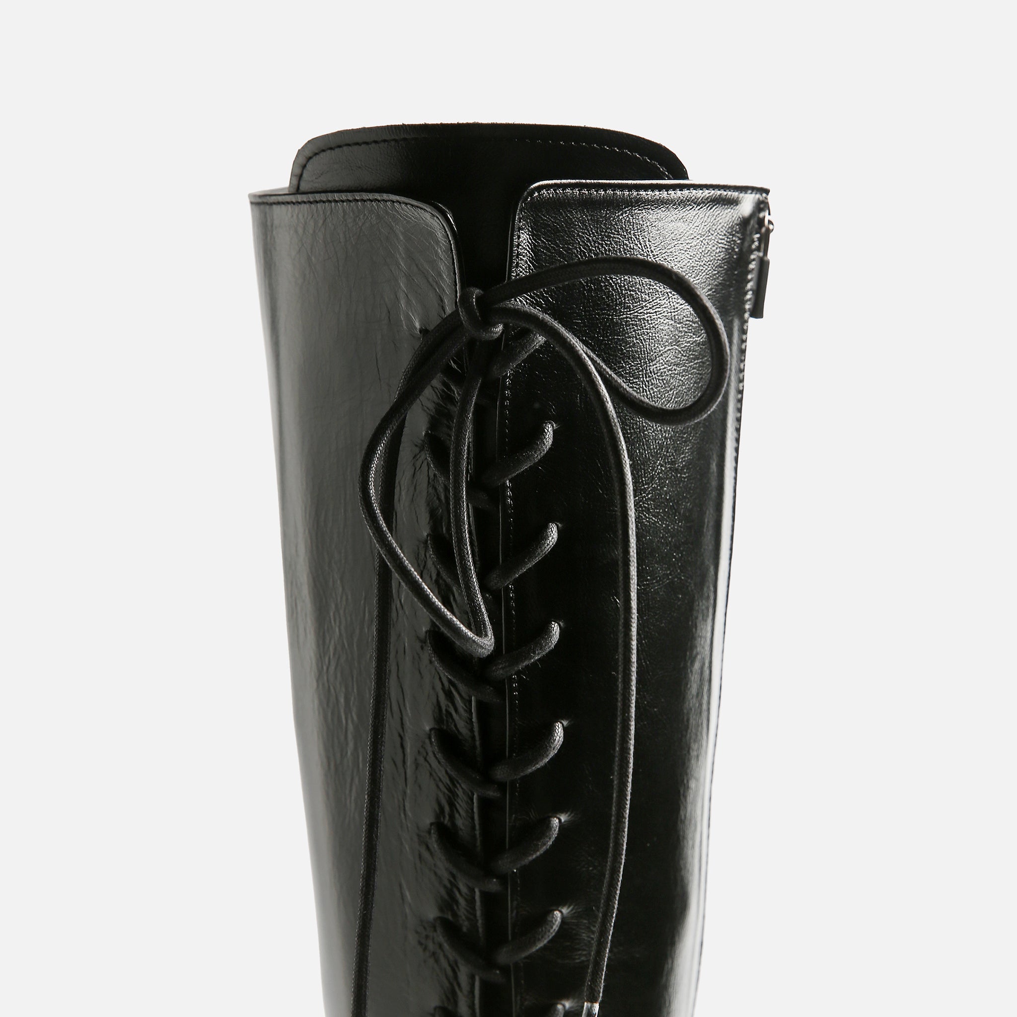 THEN - Black Lace-Up Knee-High Leather Boots | DOORS NYC